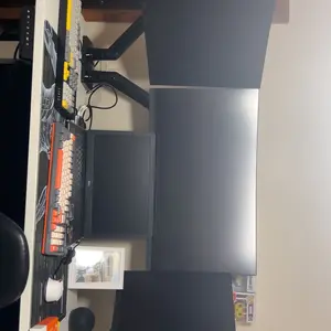 Finally dialed in my setup that was only possible with these arms supporting dual 34β ultra wide monitors, one being an OLED. So I floated all my monitors over my desk.