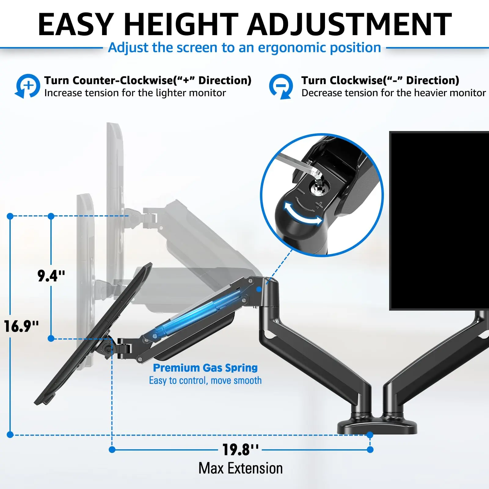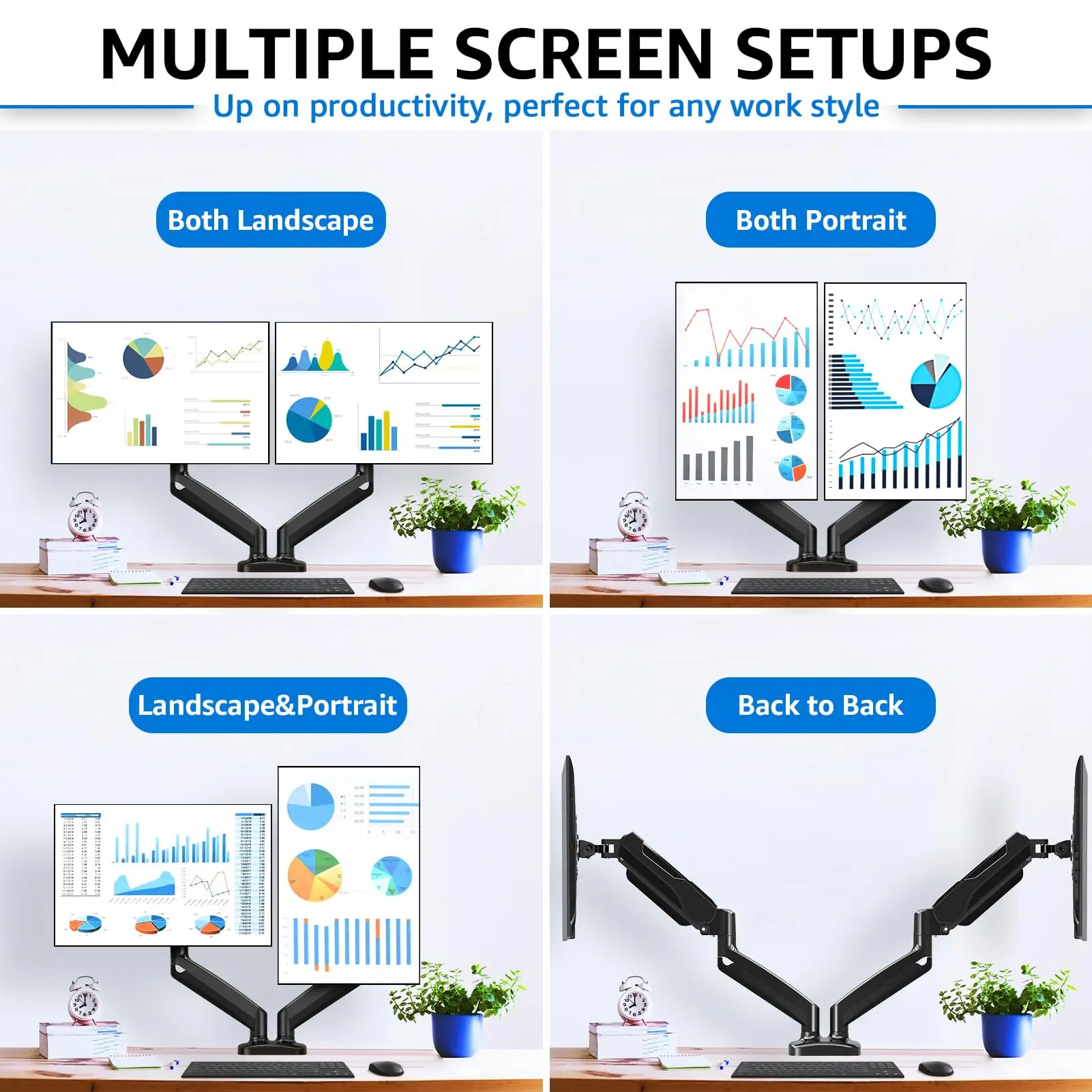 Love the holders. I had a dual monitor holder but the height was the same for both and I couldn’t move them high enough. I really like this set, both monitors are independent, so I can adjust exactly how I need the screens.