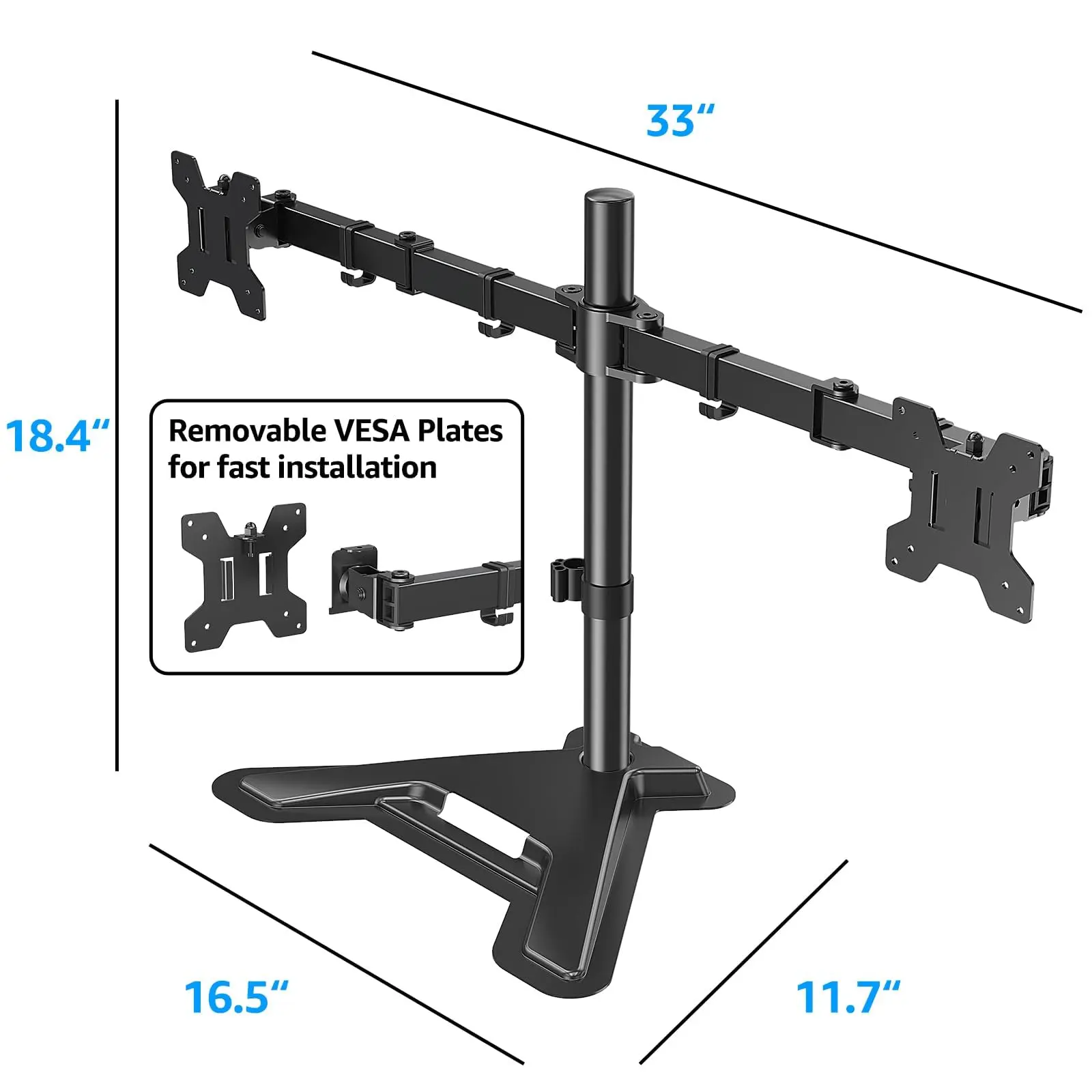 5. MOUNTUP 13"-27" Dual Monitor Stand - Freestanding & Height Adjustable Monitor Desk Mount MU1002