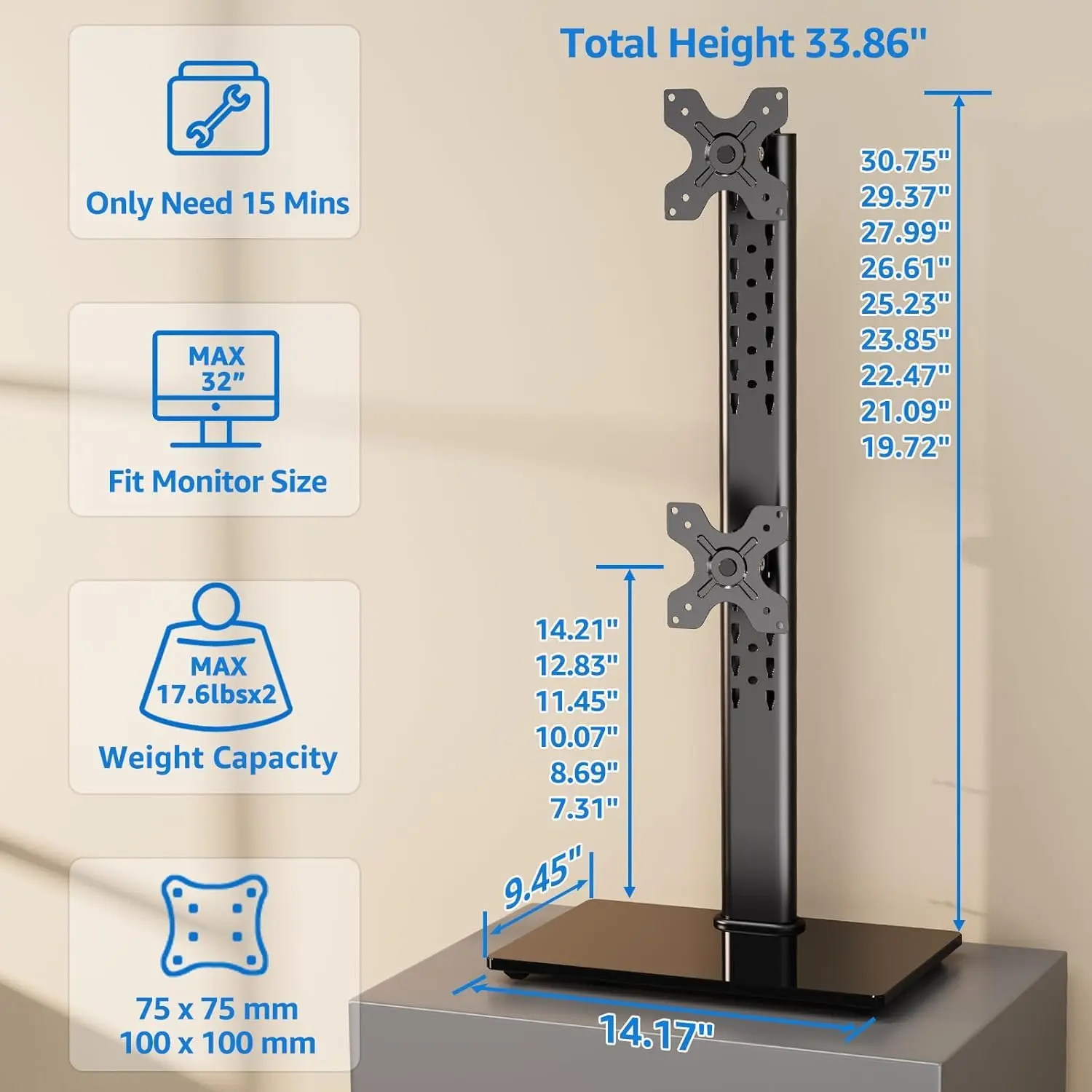 5. MOUNTUP for Max 35'' Vertical Dual Monitor Stand Monitors MU1006