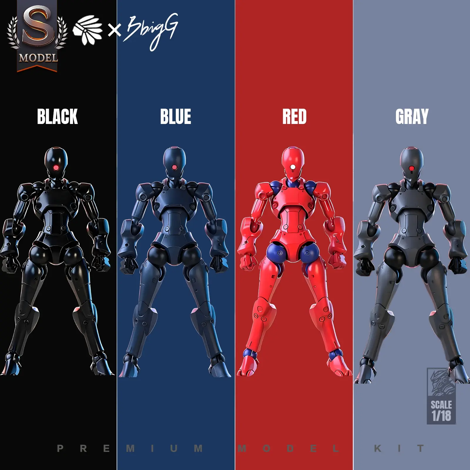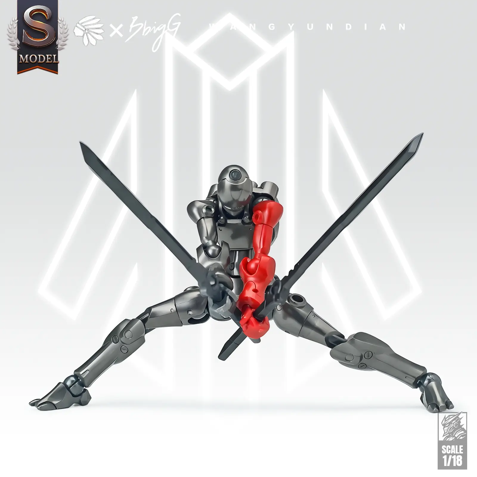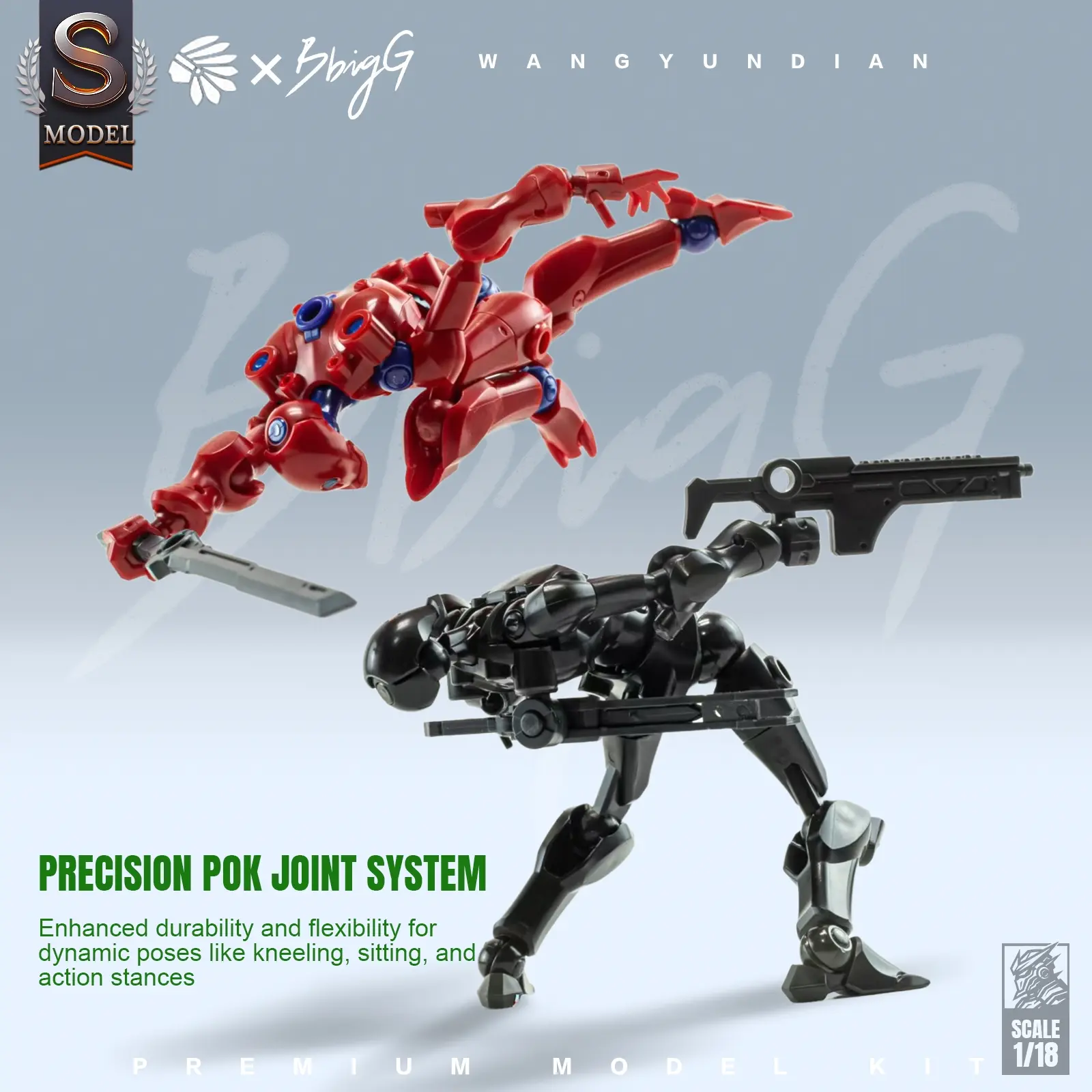 Amazing model kit, came with two robots that have a fantastic range of motion and multiple positions they can pose in. This kit comes with 2 stands (one for each model) combat knife, pistol, rifle, sheath, and katana. The sheath can be used for the katana or the combat knife.