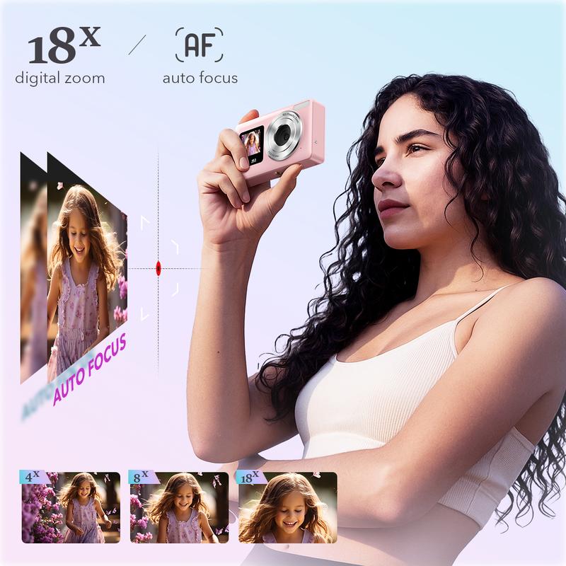 Zoom in on distant scenes with ease using 18X digital zoom. Combined with AF auto focus, your images stay crisp and steady—whether you're shooting landscapes, pets, or everyday details.