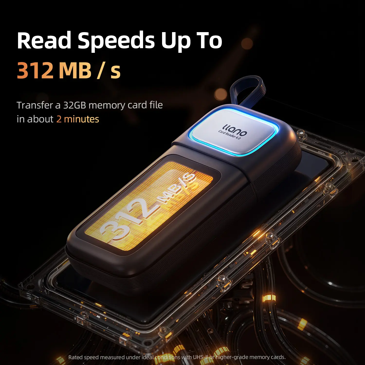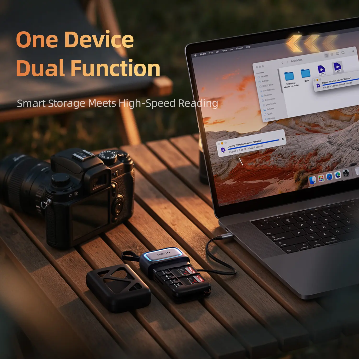 Built tough with water, dust, and shock resistance plus 9 layers of protection, this reader safeguards your precious data during every transfer. It’s tested for 10,000 insertions, so it’s ready for your daily grind. The included silicone case and aluminum carabiner make it easy to carry on outdoor adventures. LED indicators keep you in the know—blue for power, green for reading.
