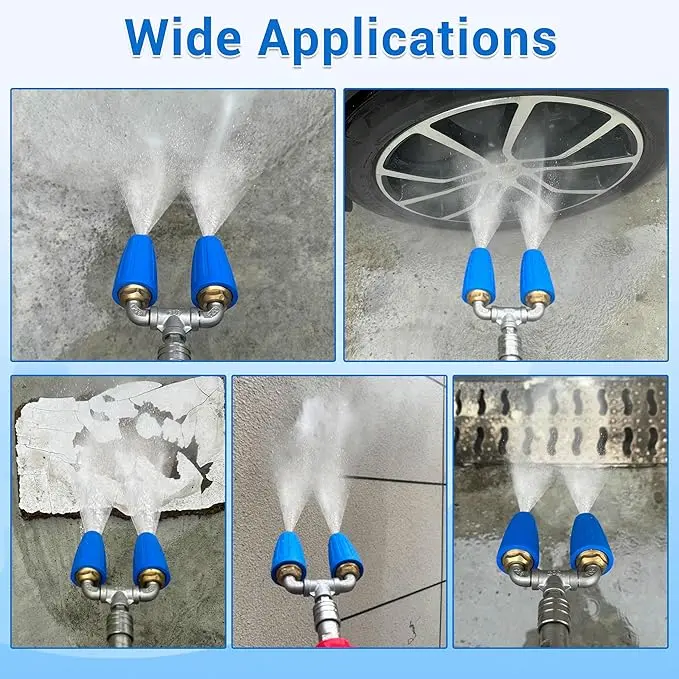 ·【Excellent Features】Dual high-pressure washer is made of high quality materials, corrosion resistant and non-leaking. Each nozzle orifice size is 2.0, the maximum working pressure is 4000 PSI, the gallons per minute is 4.0-6.0, and the maximum working temperature is 140℉/60℃. The rotating pressure washer nozzle is a reliable and practical choice for your cleaning needs.