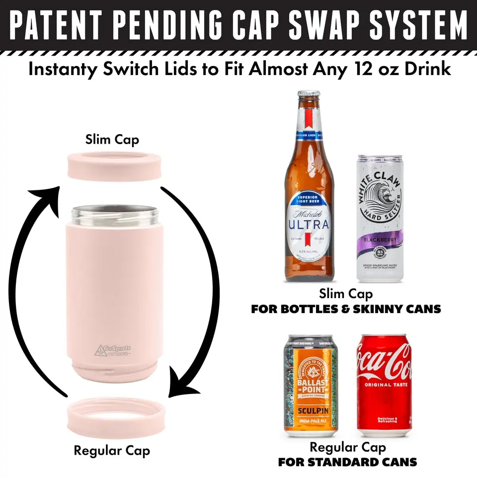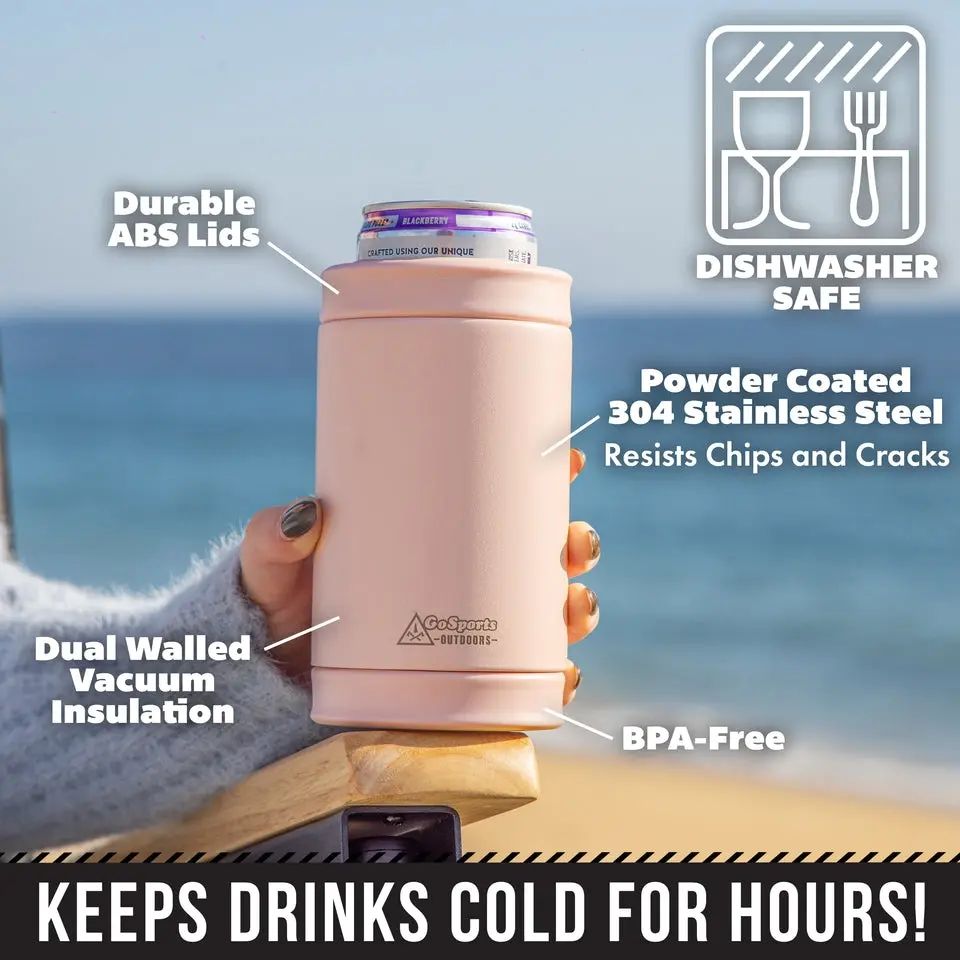 The GoSports Outdoors DUALIE is a new, premium insulation system for your drinks, all at an amazing value! With a single DUALIE you get a 3-in-1 can insulator that fits standard 12 oz cans, slim cans, and beer bottles, so there's no need to buy multiple can coolers. Our dual cap design allows you to easily swap the top and bottom lids to accommodate different beverages. Featuring dual-walled construction and made from durable stainless steel, the DUALIE keeps your drinks chilled for hours and protects your hands and tabletops from unpleasant condensation. It's great for sodas, seltzers, beer, and more! The DUALIE also fits inside most modern car cup holders, and our Cuddy cooler, and comes in a variety of colors. Don't let your drinks go warm, grab your favorite DUALIE today!