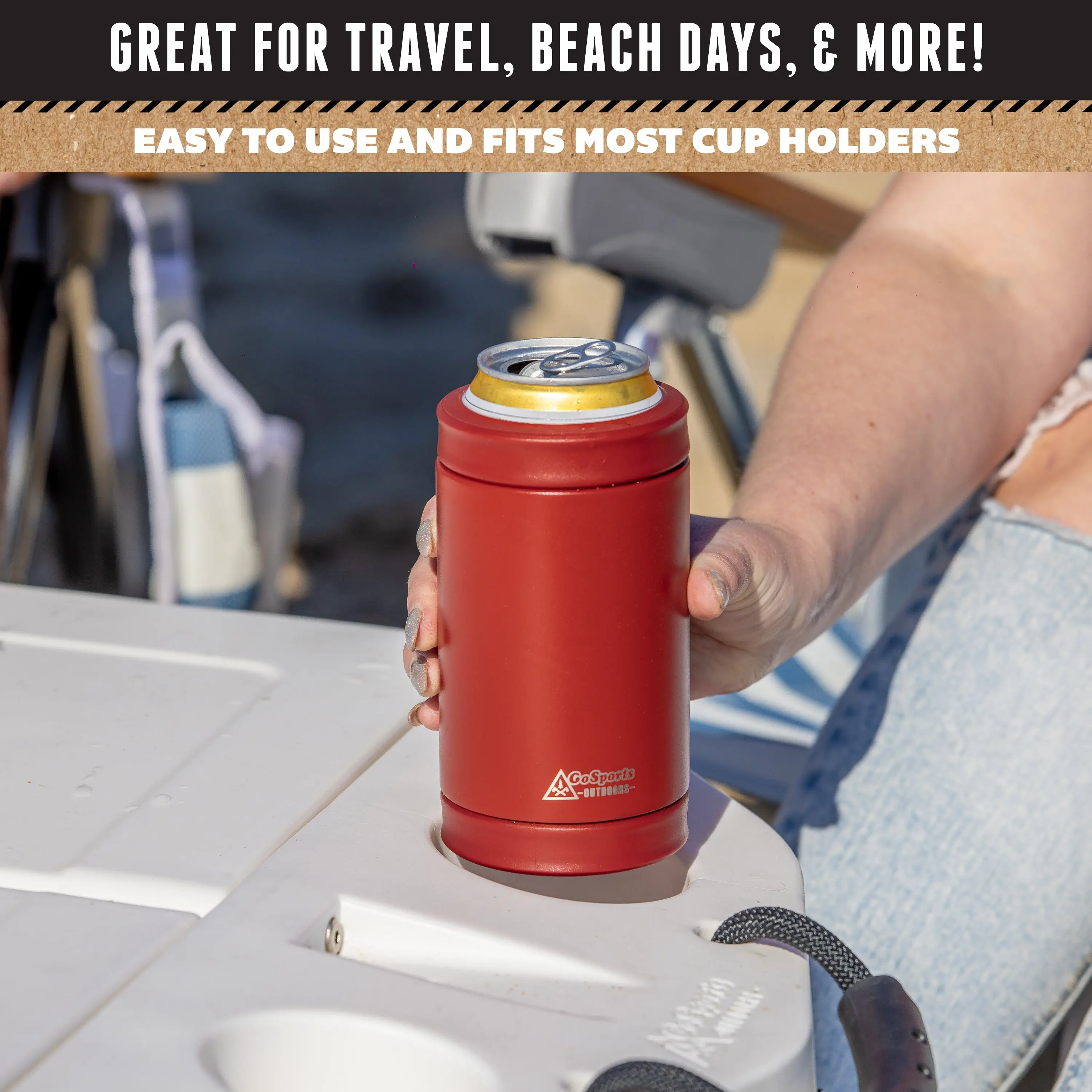 The GoSports Outdoors DUALIE is a new, premium insulation system for your drinks, all at an amazing value! With a single DUALIE you get a 3-in-1 can insulator that fits standard 12 oz cans, slim cans, and beer bottles, so there's no need to buy multiple can coolers. Our dual cap design allows you to easily swap the top and bottom lids to accommodate different beverages. Featuring dual-walled construction and made from durable stainless steel, the DUALIE keeps your drinks chilled for hours and protects your hands and tabletops from unpleasant condensation. It's great for sodas, seltzers, beer, and more! The DUALIE also fits inside most modern car cup holders, and our Cuddy cooler, and comes in a variety of colors. Don't let your drinks go warm, grab your favorite DUALIE today!