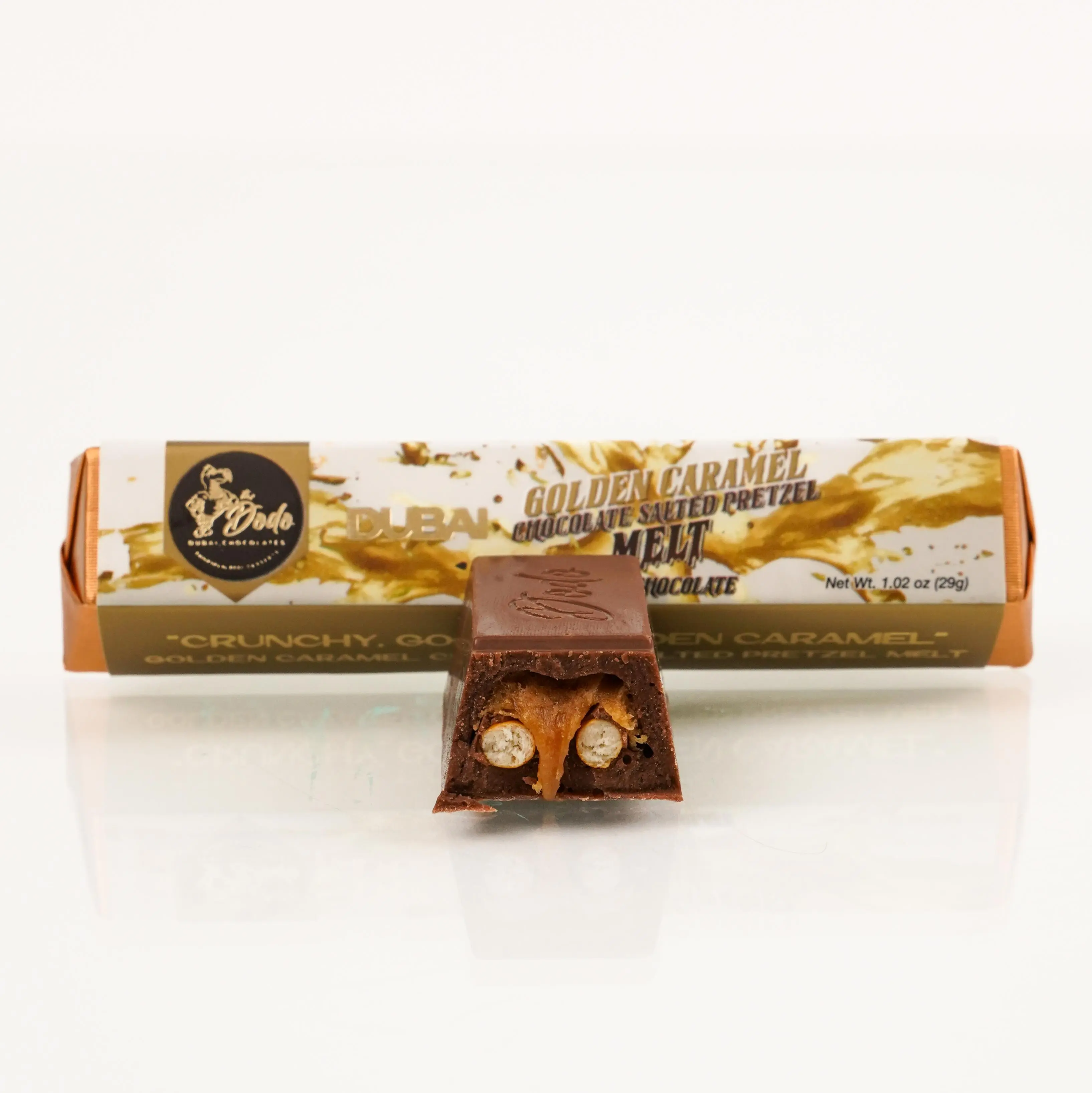 Smooth golden caramel blend with crunchy pretzel bites for a rich, gooey satisfying taste in every bar.