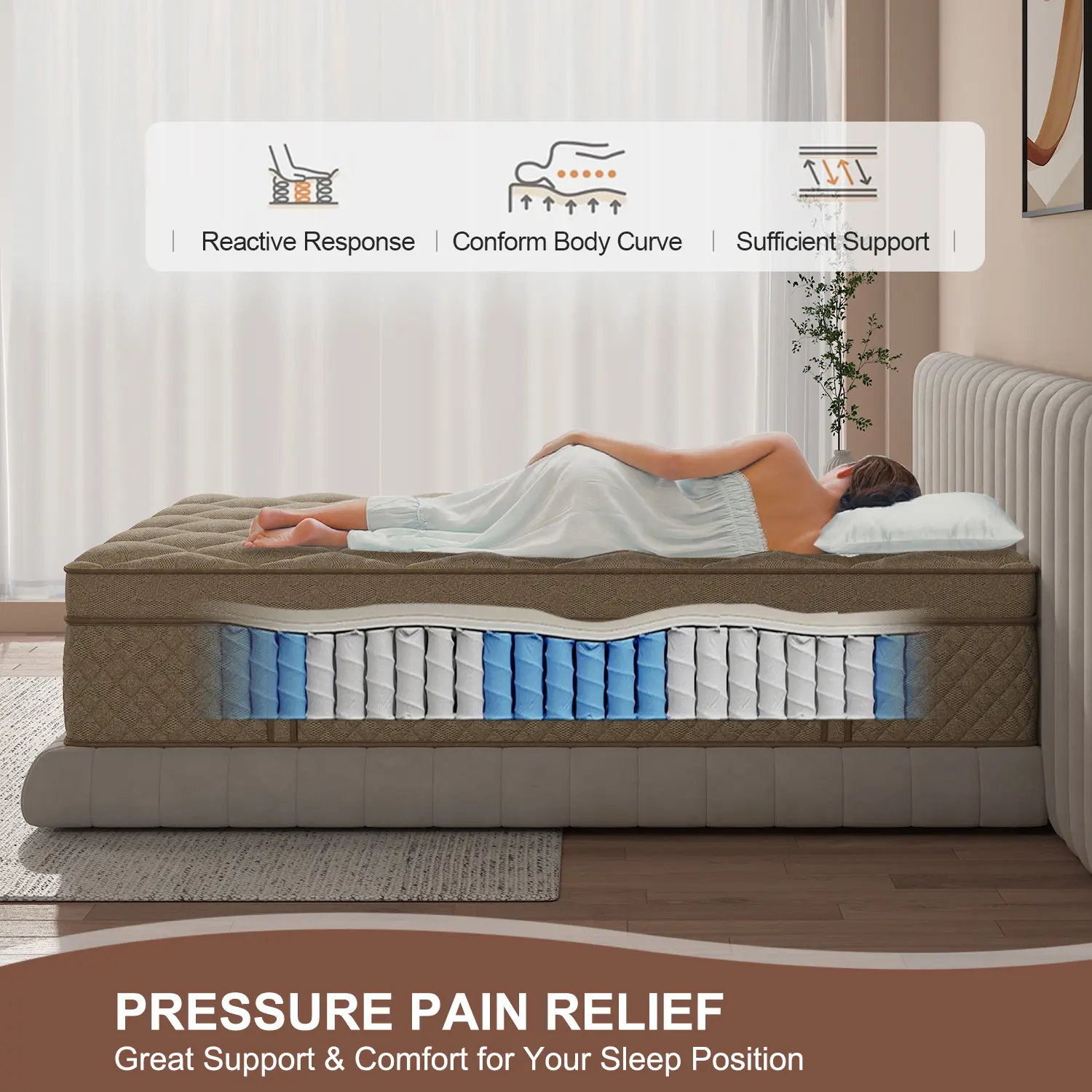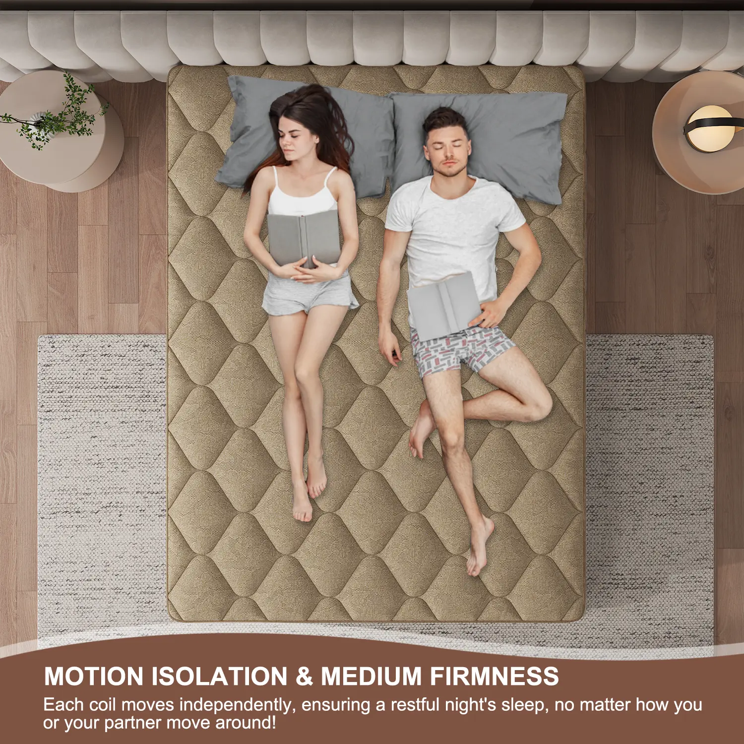 MOTION ISOLATION & EDGE SUPPORT - Independent support between the springs, eliminates the movement of interference, avoiding friction between each other to make noise, and providing you with a noise-free sleep, you can wake up feeling energetic and refreshed after a night of undisturbed sleep. The thickened springs at both edges improve the edge support of the mattress, so you won't feel unstable sleeping near the edge of the mattress or roll off.