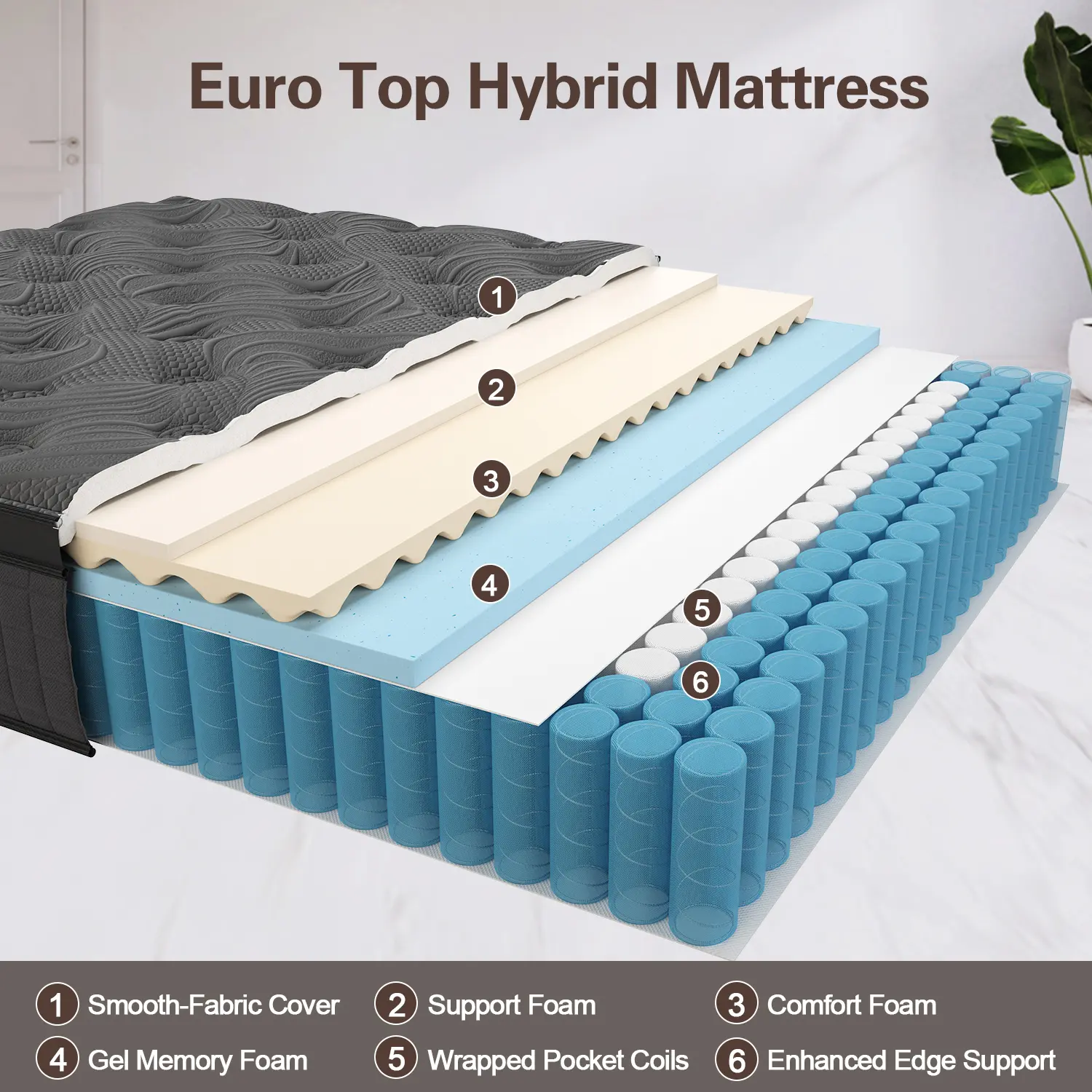 STAY COOL ALL NIGHT LONG - Duchessz hybrid mattress covers are made of high-end knit fabric with a comfortable and breathable surface. Cooling Gel-Infused Memory Foam enhances airflow, helps dissipate body heat and stabilizes your sleep temperature, offering a cool sleep experience.