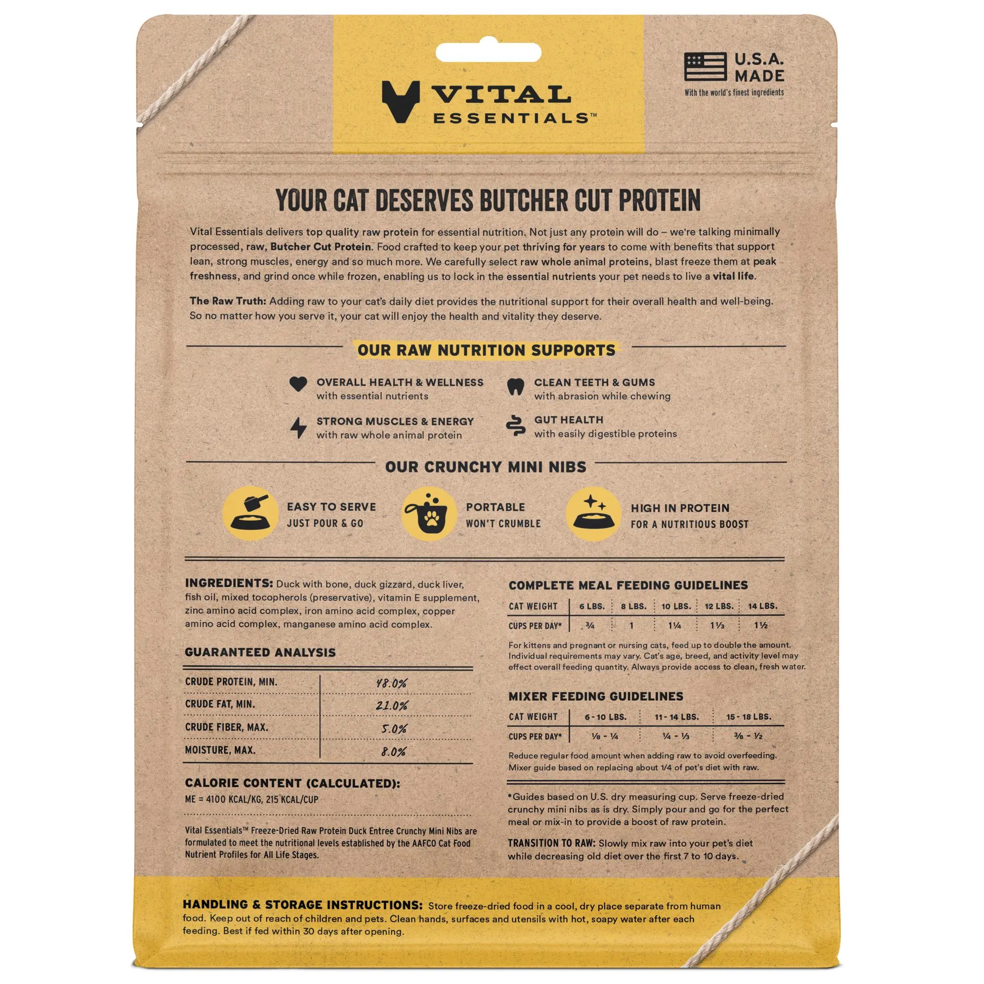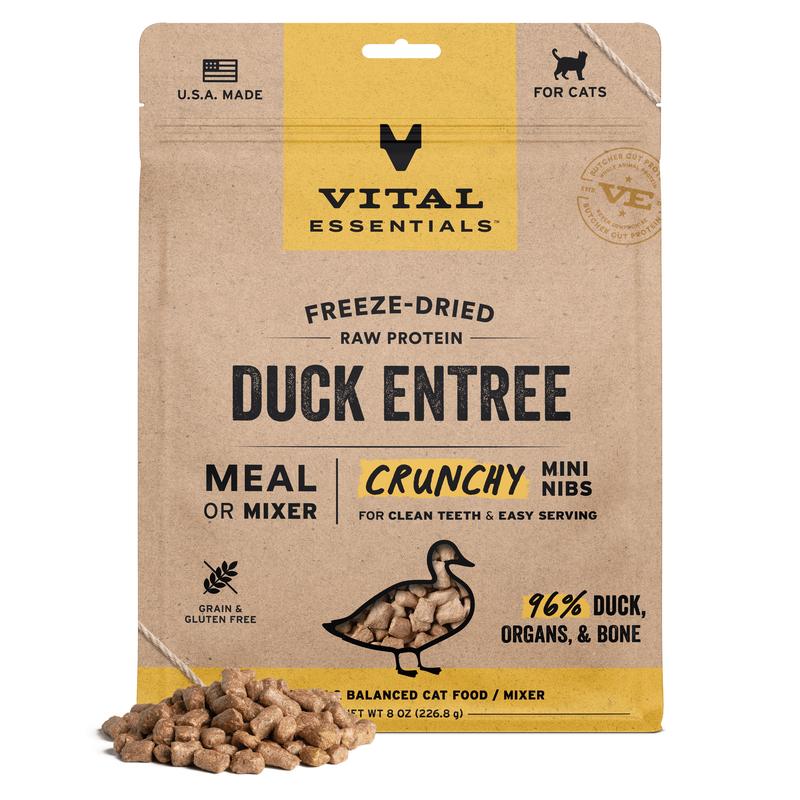 5. Vital Essentials Freeze-Dried Raw Duck Entree Cat Food Mini Nibs