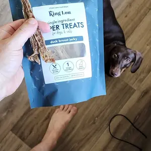 My pup is very picky with what he eats. He has enjoyed all king lou products and this duck jerky is no different! Nose in the bag as soon as it opens!