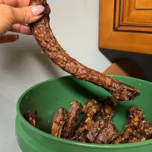 I got a great deal on this bucket. My pup Bailey loves her duck necks and she expects one after every meal. Id say she’s a fan and I love that they are dental chews so they help her teeth!! Overall I give them a 10000/10! :)