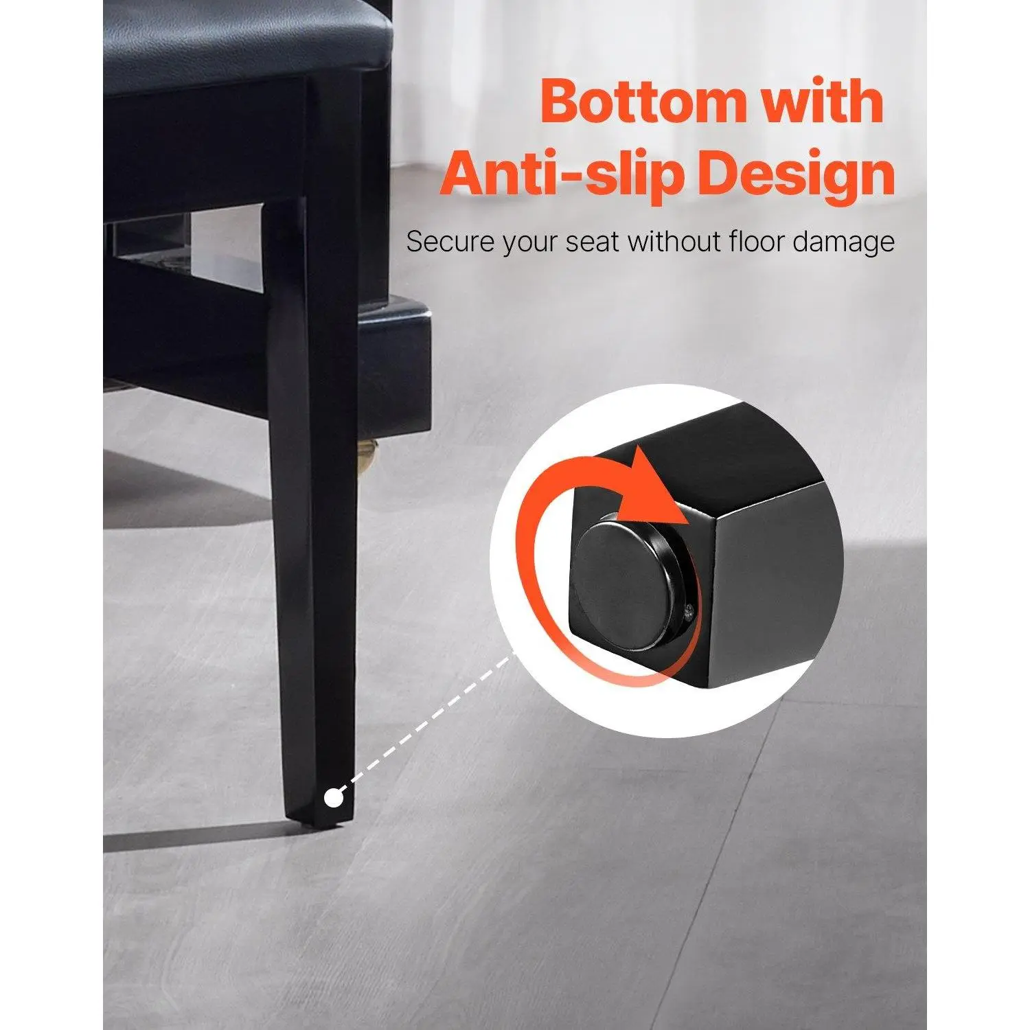 ·Anti-Slip Design: This piano chair features durable rubber pads at the bottom that provide a stable and secure grip on both hardwood floors and smooth surfaces. The anti-slip design ensures that the bench stays firmly in place while you play, safeguarding your floors from scratches and minimizing unwanted movement.