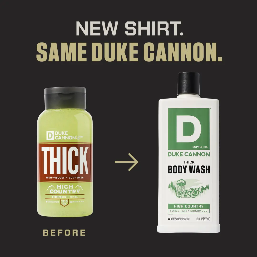 That's why Duke Cannon's THICK is formulated with a noticeably higher viscosity and built to work effectively on your body, not spew down the shower drain.