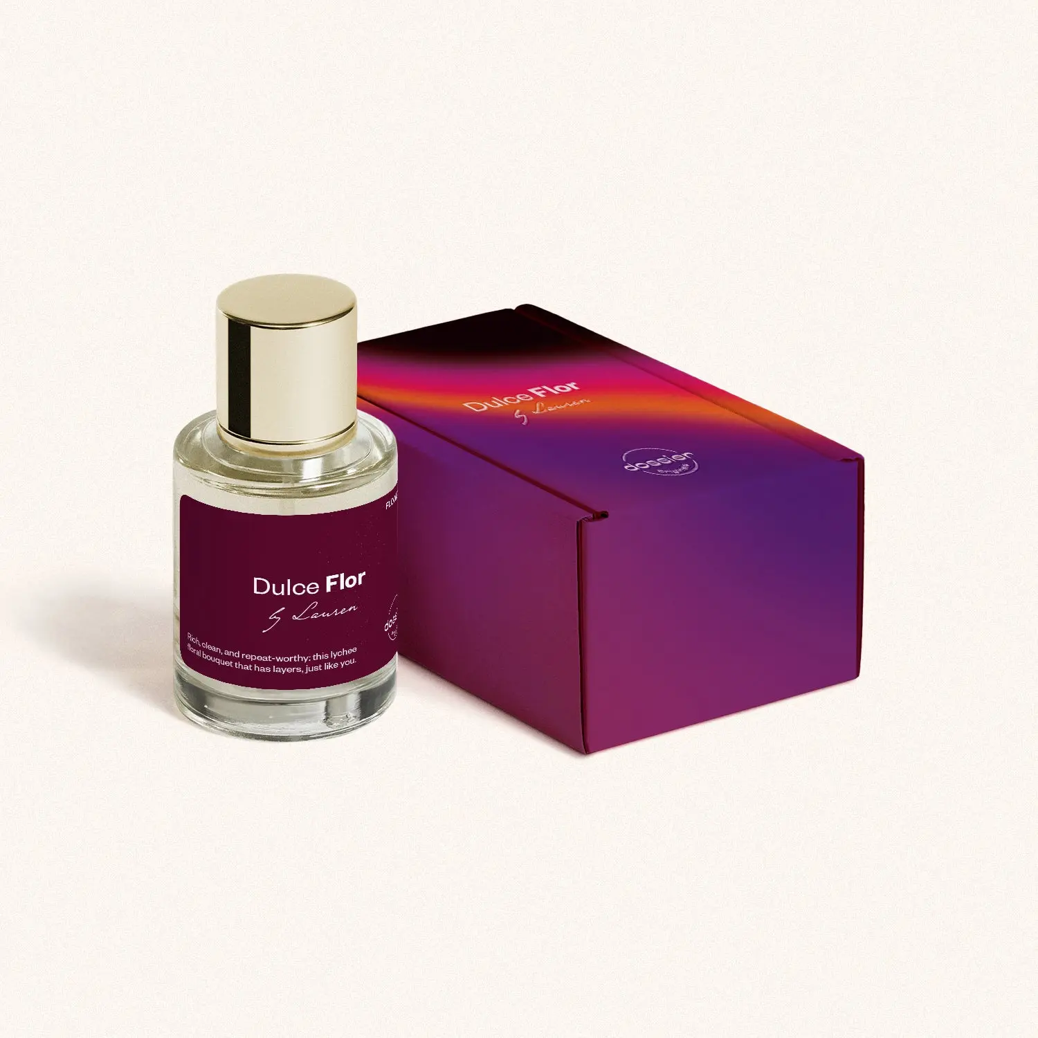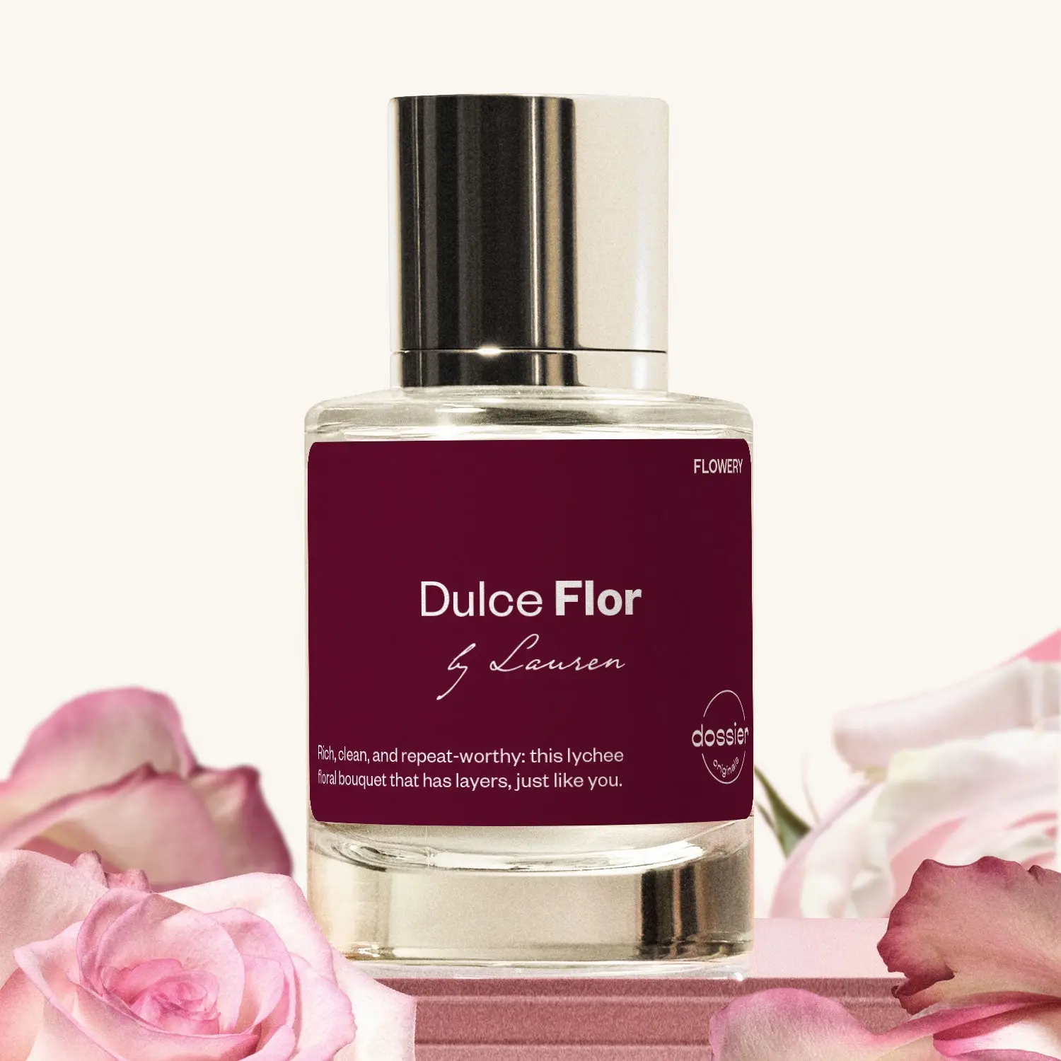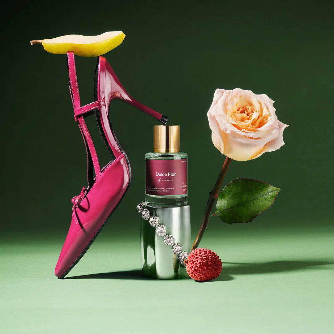 At the heart, Dulce Flor evolves into an elegant floral core with a lush bouquet of rose petals and tuberose with sensual jasmine sambac and fresh geranium notes.