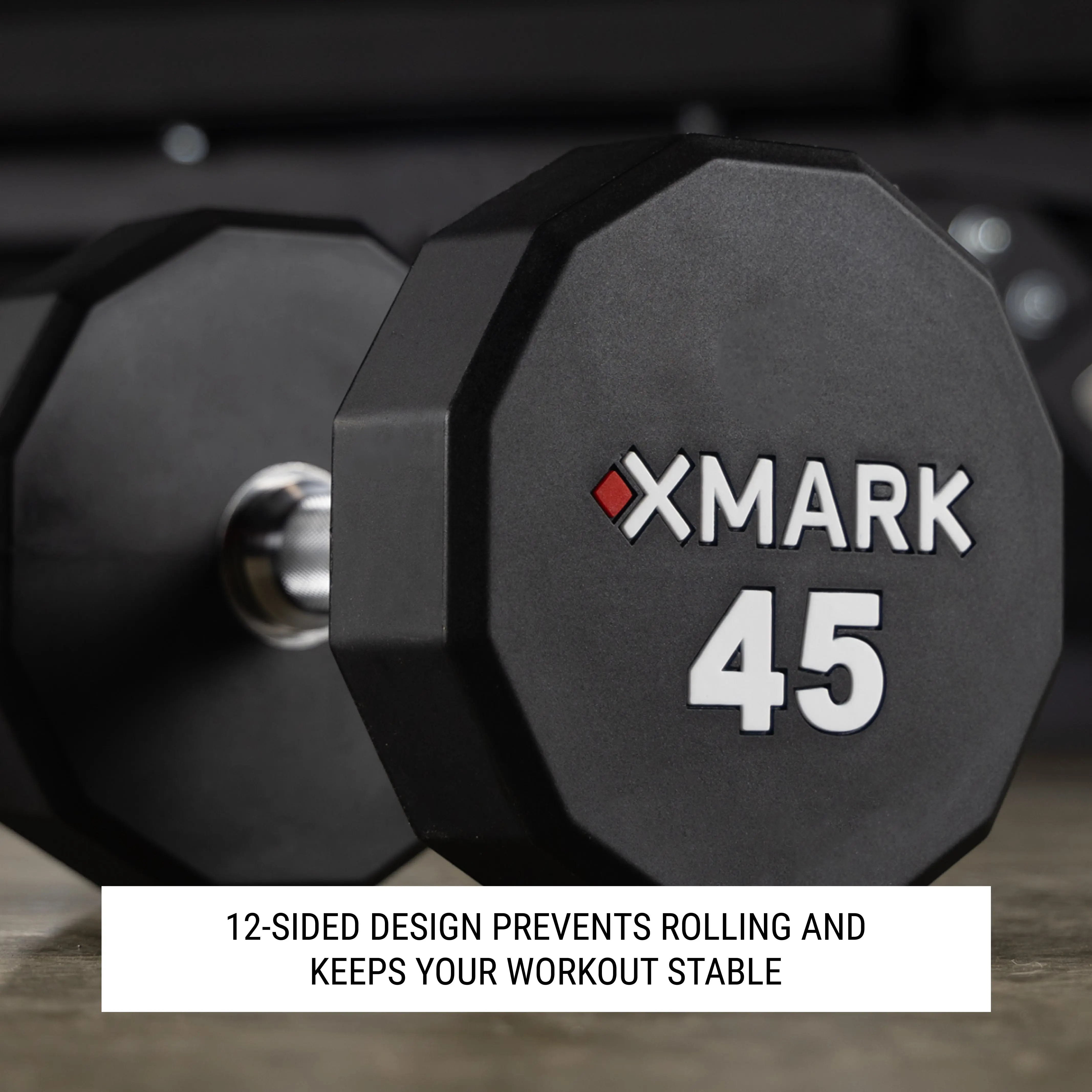 15 to 75 lb. Pairs, 12-Sided Commercial CPU Urethane Dumbbells