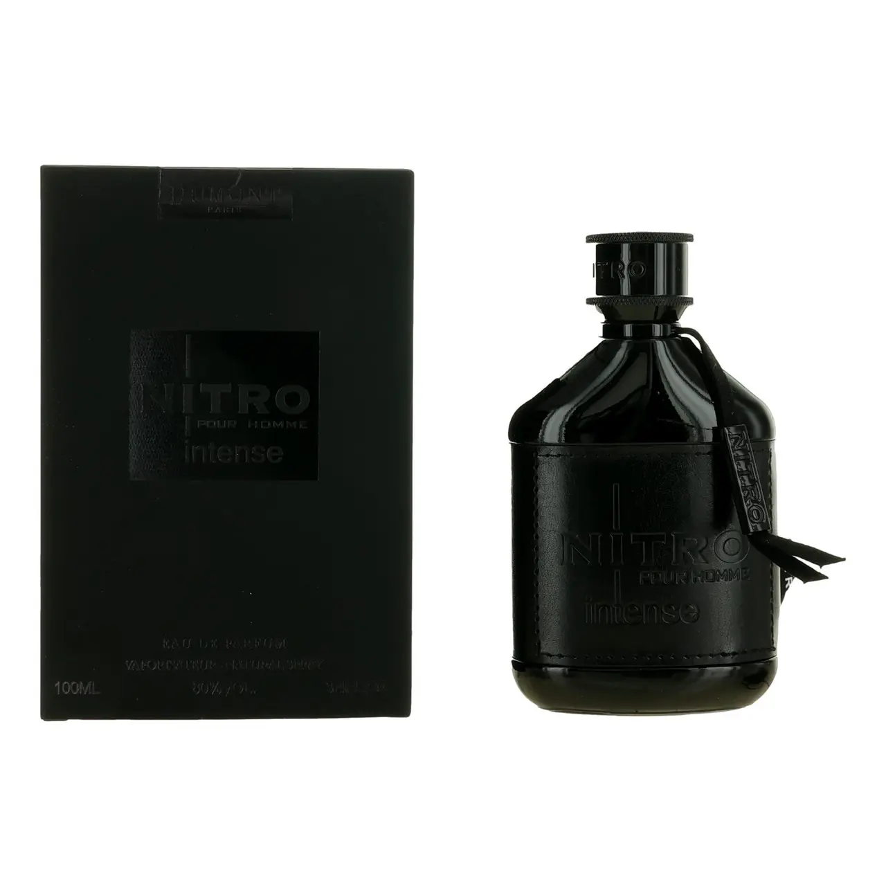 Discover the Dumont Nitro Black Intense Eau De Parfum – a striking fragrance for men. This 100ml (3.4 oz) bottle is designed to captivate. Perfect for those who appreciate a bold scent, it's a statement piece in any collection. The product image suggests a sleek, modern design that complements its powerful aroma.