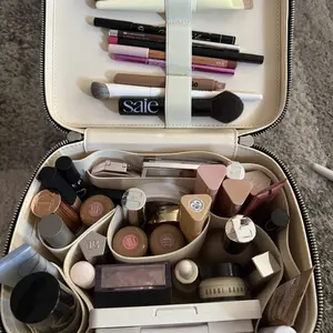 Ummm yeah… literally the same exact makeup bag as a certain specific cosmetic case 🤨👀 except this isn’t $100+ 😊 Measurements are the same and it’s amazing for organization. 10/10 for the girls with a large collection of makeup. Wouldn’t recommend for someone with only a couple products, because it’s a bit big, but perfect for me :))