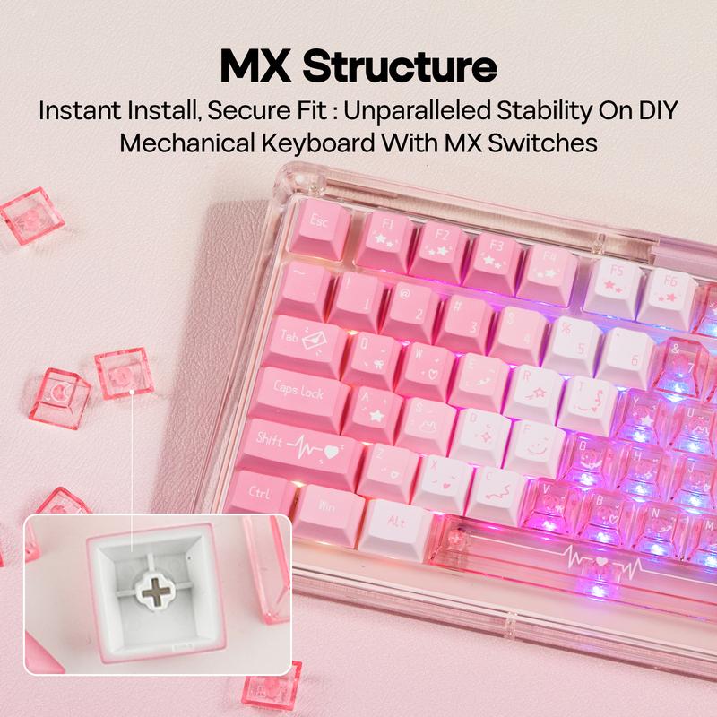 Premium Materials: The non-shine-through keycaps are made from durable PBT material, offering excellent wear resistance and oil stain resistance. The shine-through keycaps are crafted from transparent PC material, effectively enhancing the backlighting for a stunning visual experience. With distinct tactile feedback and striking aesthetics, these keycaps add a unique charm to your keyboard