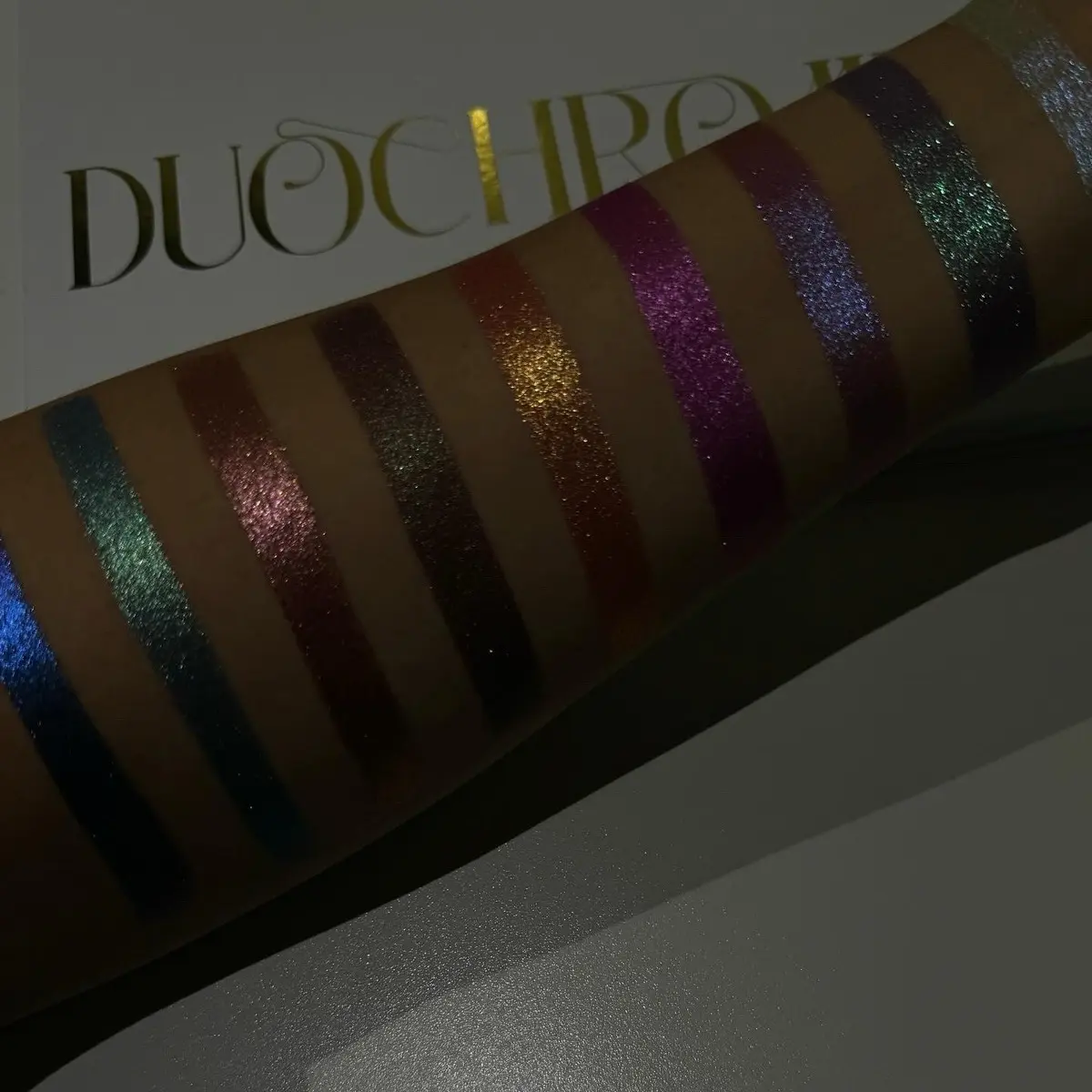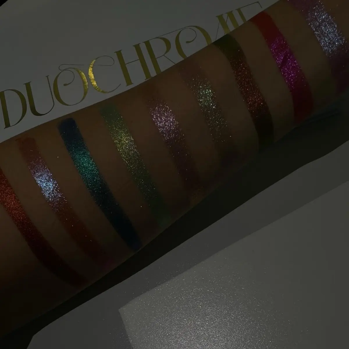 This is the only pallette you need. Some colors are incredibly shiny chrome with a subtle shift, some are fully color-shifting and glittery. ALL colors are stunning. I bought products from another popular creator on here and kind of wish I'd just picked up this because these are IDENTICAL.