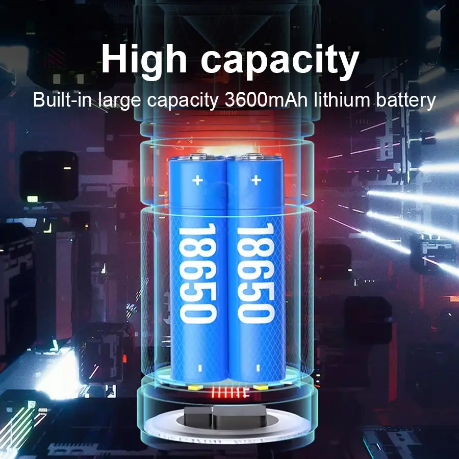 3. Freely adjustable step brightness from 800 to 2000 lumens, coupled with a 3600mAh large-capacity battery, it can meet a variety of needs from camp lighting to long-distance search, and is durable and reliable.