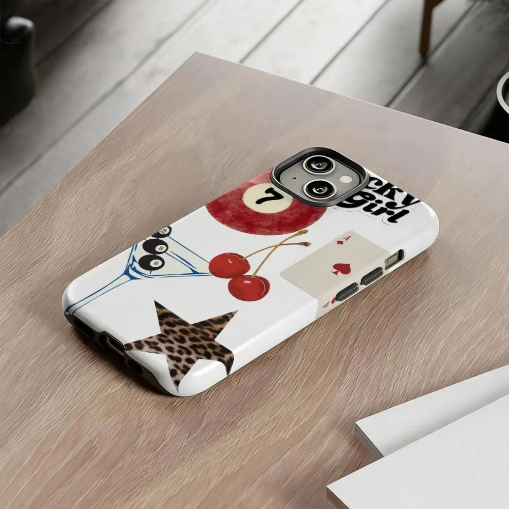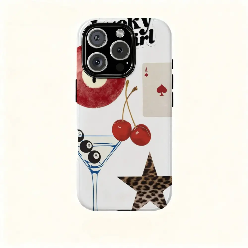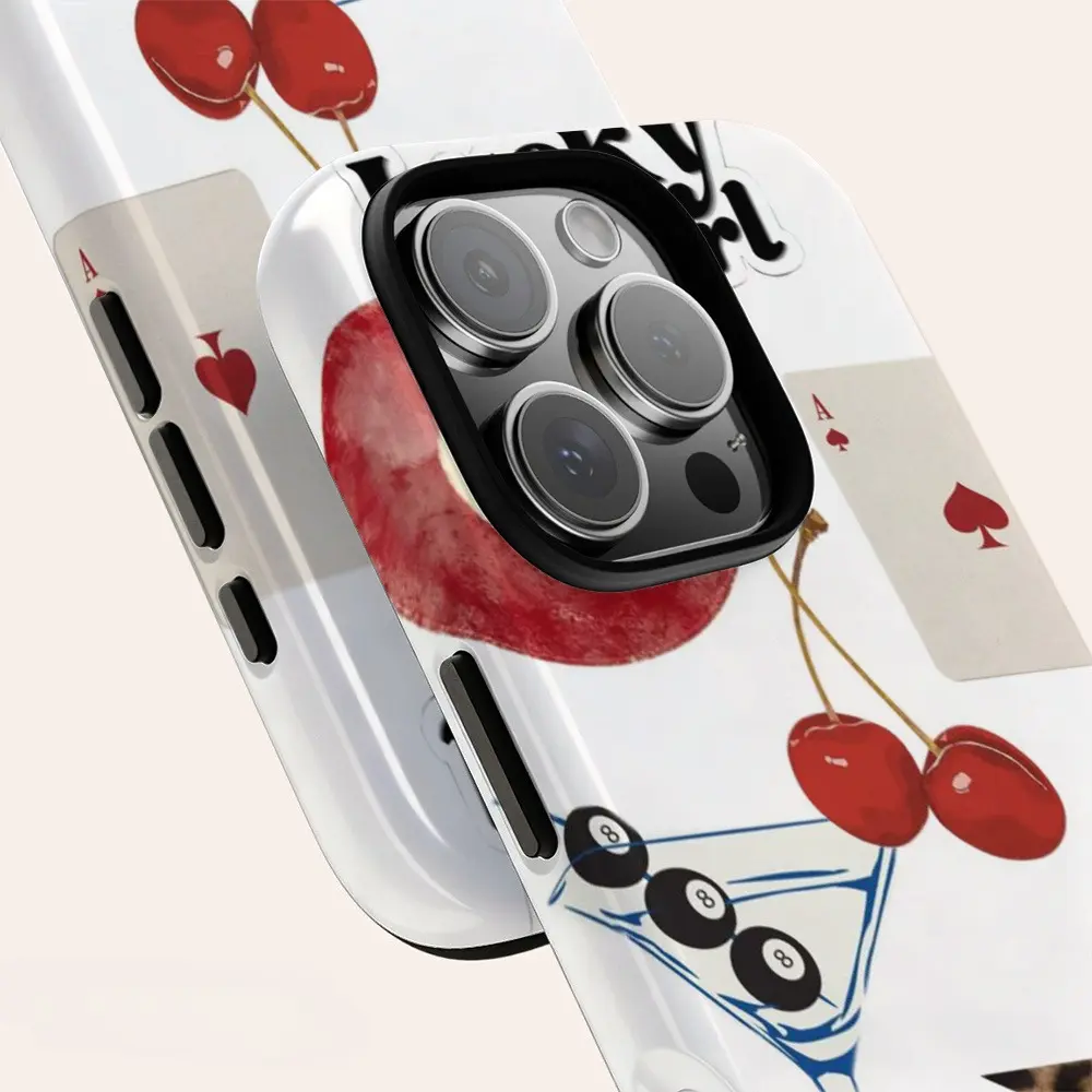 This billiards cherry and spade Ace pattern phone case is a durable 2-in-1 protective case for iPhone 17/16/15/14/13/12/11 Pro Max/Plus/Pro and Galaxy S25/S24/S23 Ultra. Durable, stylish, and protective, it makes a perfect birthday gift for a friend.