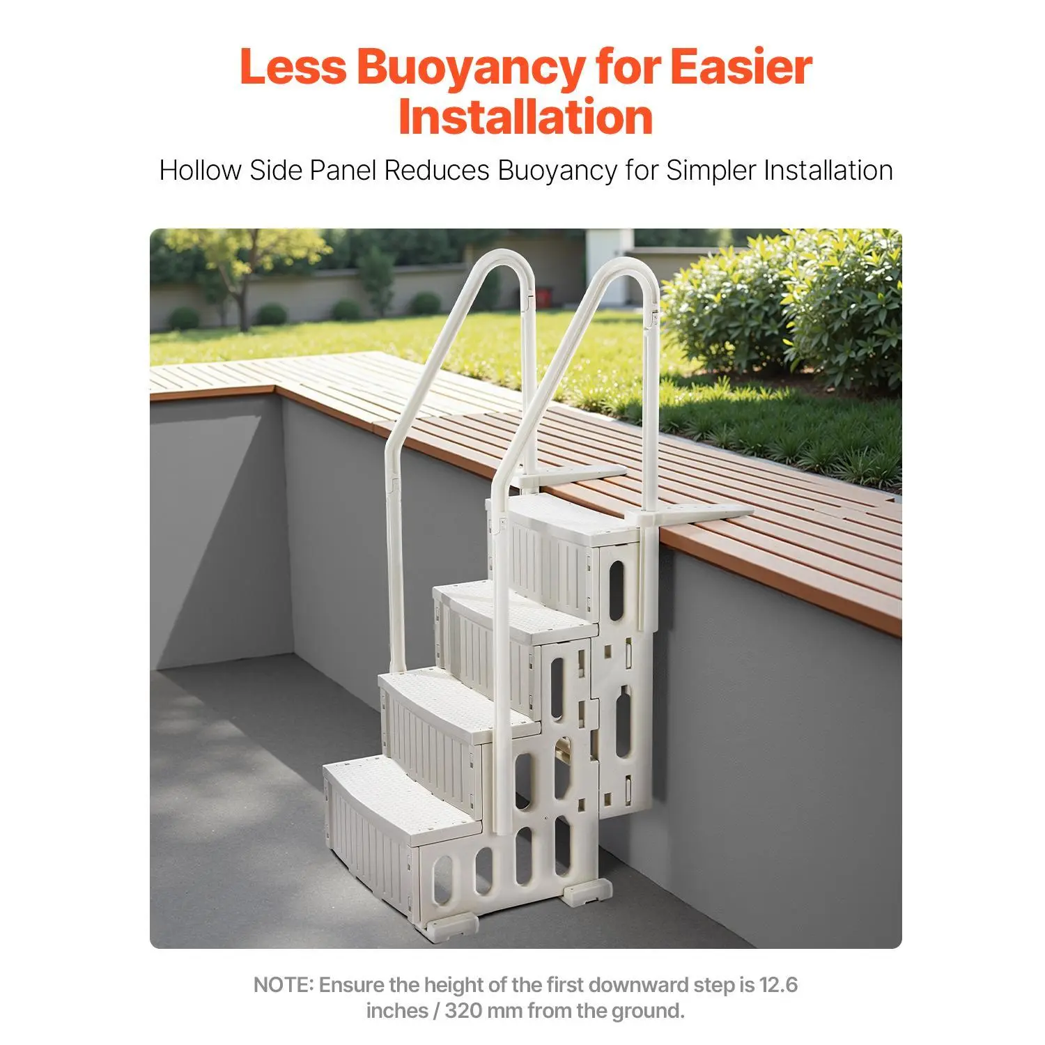5. 4-Step White Pool Ladder of Double Handrails Supports 400 lb for 48-54 In Pools