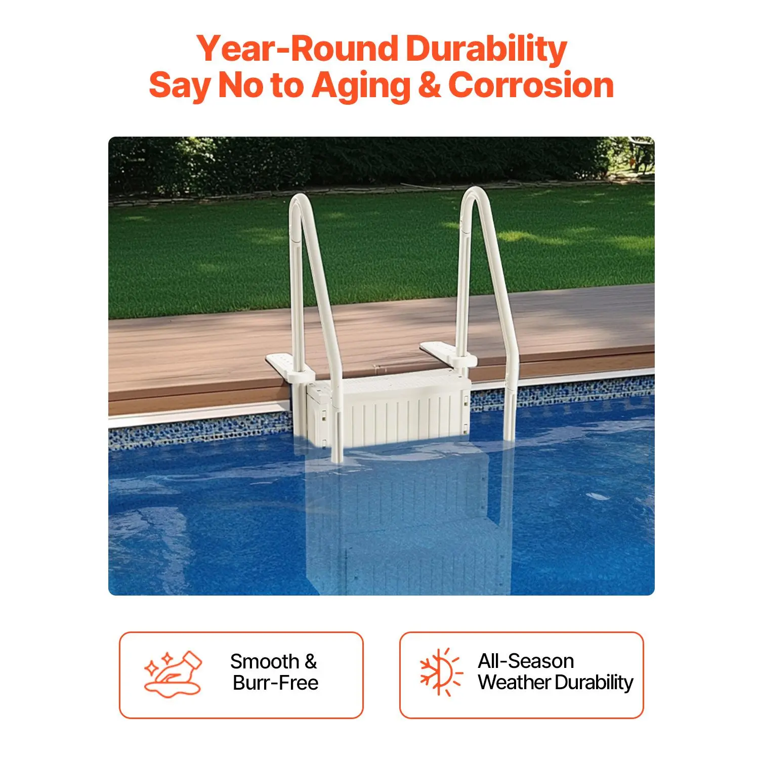 4-Step White Pool Ladder of Double Handrails Supports 400 lb for 48-54 In Pools