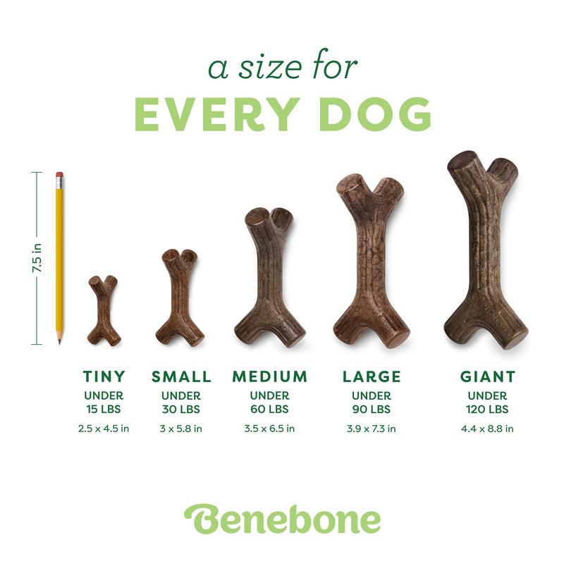 Inspired by your dogās love for sticks ā but better. TheĀ Benebone StickĀ is a tough chew toy flavored with REAL maple wood and bacon, offering all the fun of a stick without the splinters or mess.