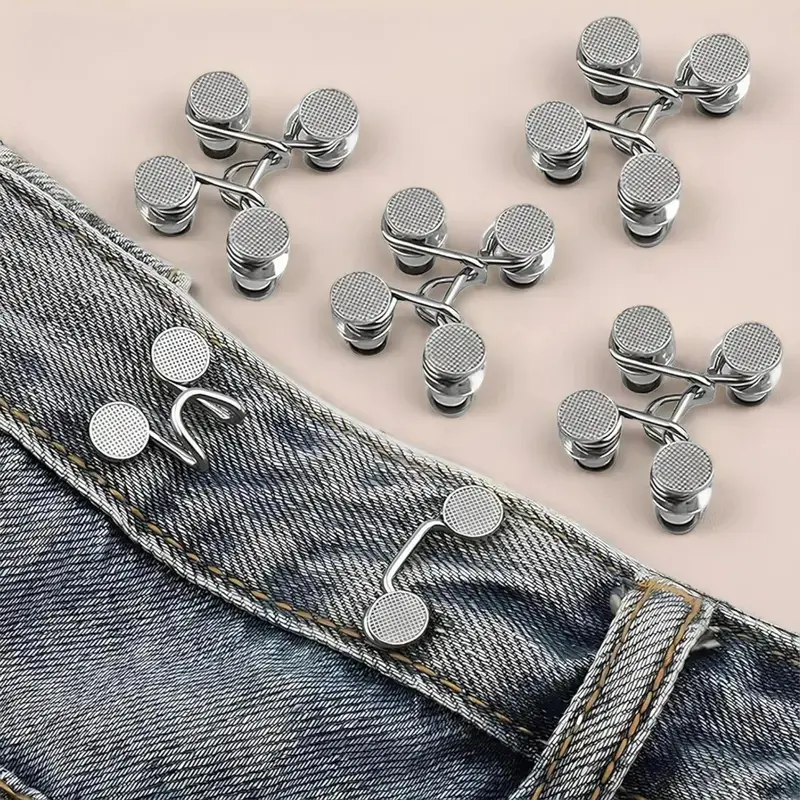 Durable Jeans Button Tightener Set, 4 Sets Adjustable Handmade Jeans Button Pins, Easy To Install Waist Tightener Button for Indoor & Outdoor