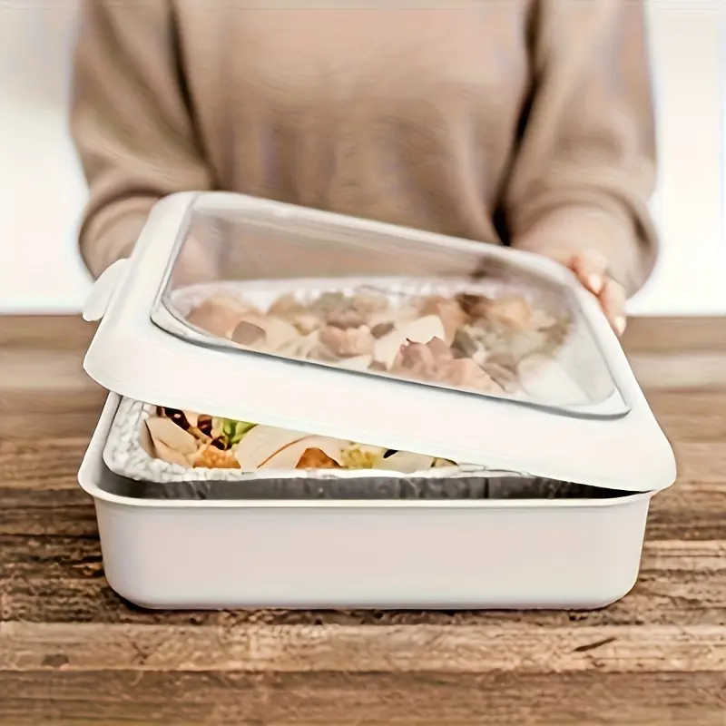 Durable Plastic Rectangular Food Containers for Picnics, Parties, and the Kitchen, Stackable 2-in-1 Insulated Salad and Grill Trays - White, Red, Black, Essential for Picnics | Rectangular Serving Trays | Insulated Food Containers, Picnic Essentials, Par