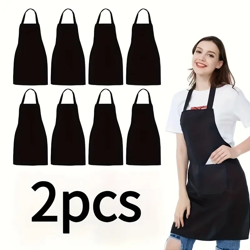 of 2 Durable Polyester Adjustable Neck Aprons with 2 Large Pockets - Neutral Color, Perfect for Cooking, Grilling, Barbecuing, Christmas Crafts, Machine Washable, Kitchen Cooking Aprons, Grilling Aprons | Adjustable Aprons | Polyester Aprons