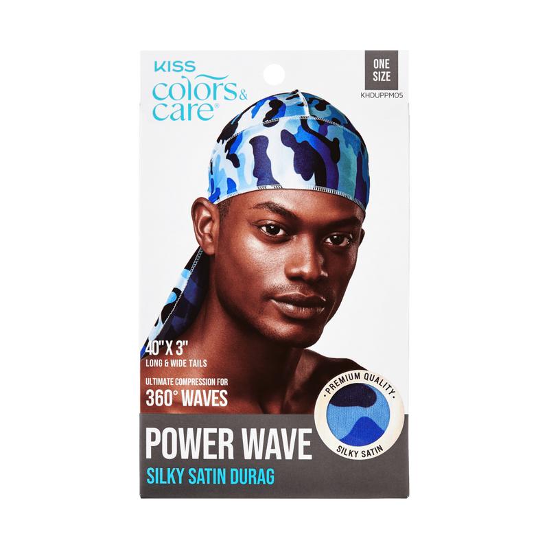 5. KISS Colors & Care Power Wave Silky Satin Military Durag - Blue Camo