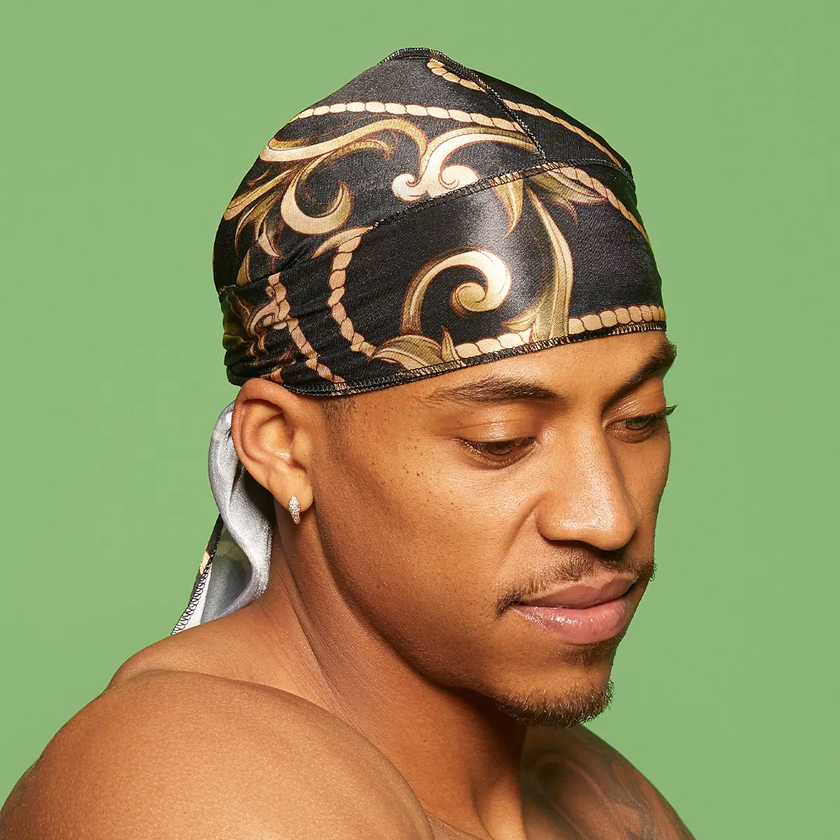 Fashionable & functional. Black and gold silky satin durag provides ultra-compression for the perfect 360° waves. Breathable premium fabric is one size fits all.