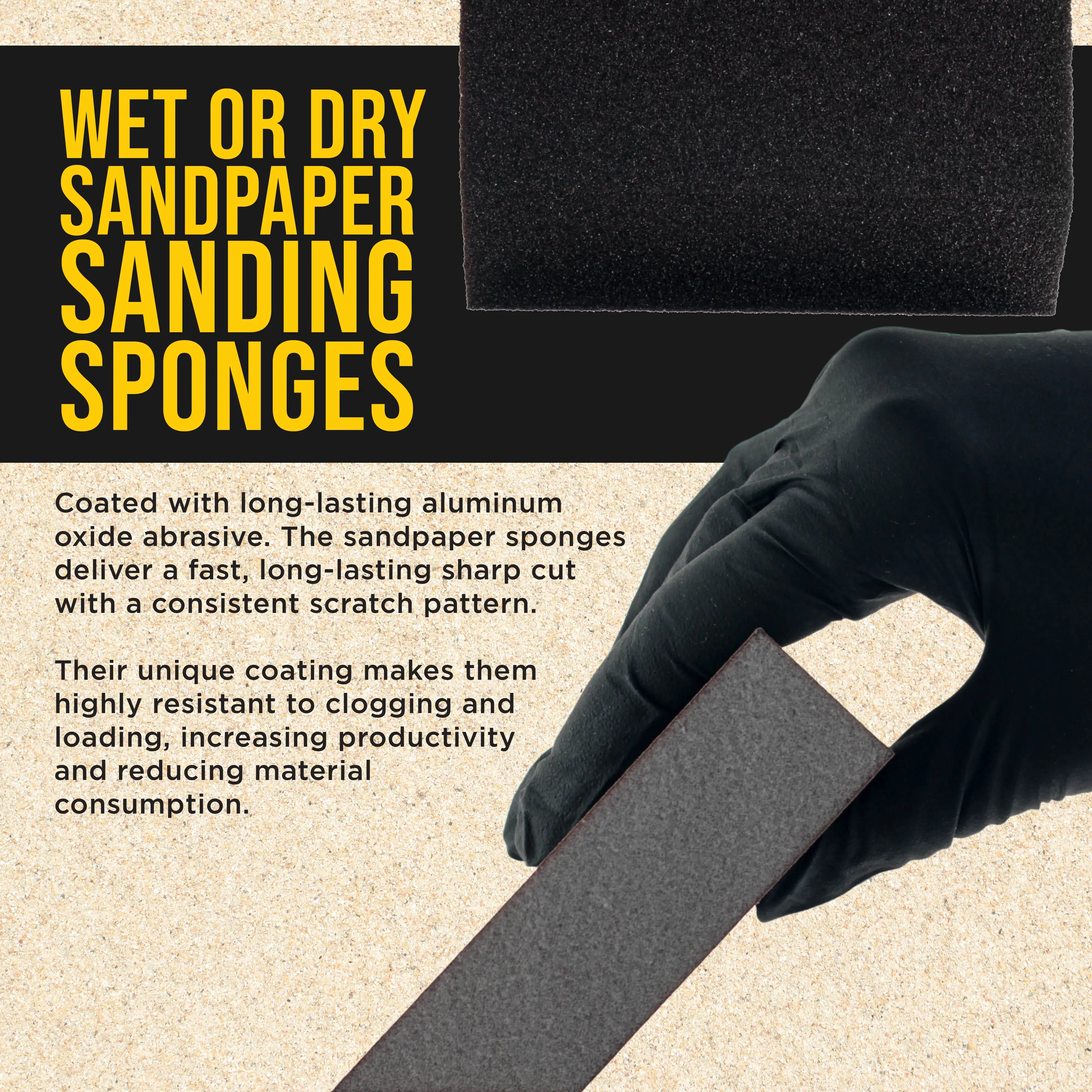 ·Premium-quality four-sided wet or dry sandpaper sanding sponges that are coated with long-lasting aluminum oxide abrasive. The sandpaper sponges deliver a fast, long-lasting sharp cut with a consistent scratch pattern. Their unique coating makes them highly resistant to clogging and loading, increasing productivity and reducing material consumption. Use less sponge by cutting the pads to size depending on your needs.