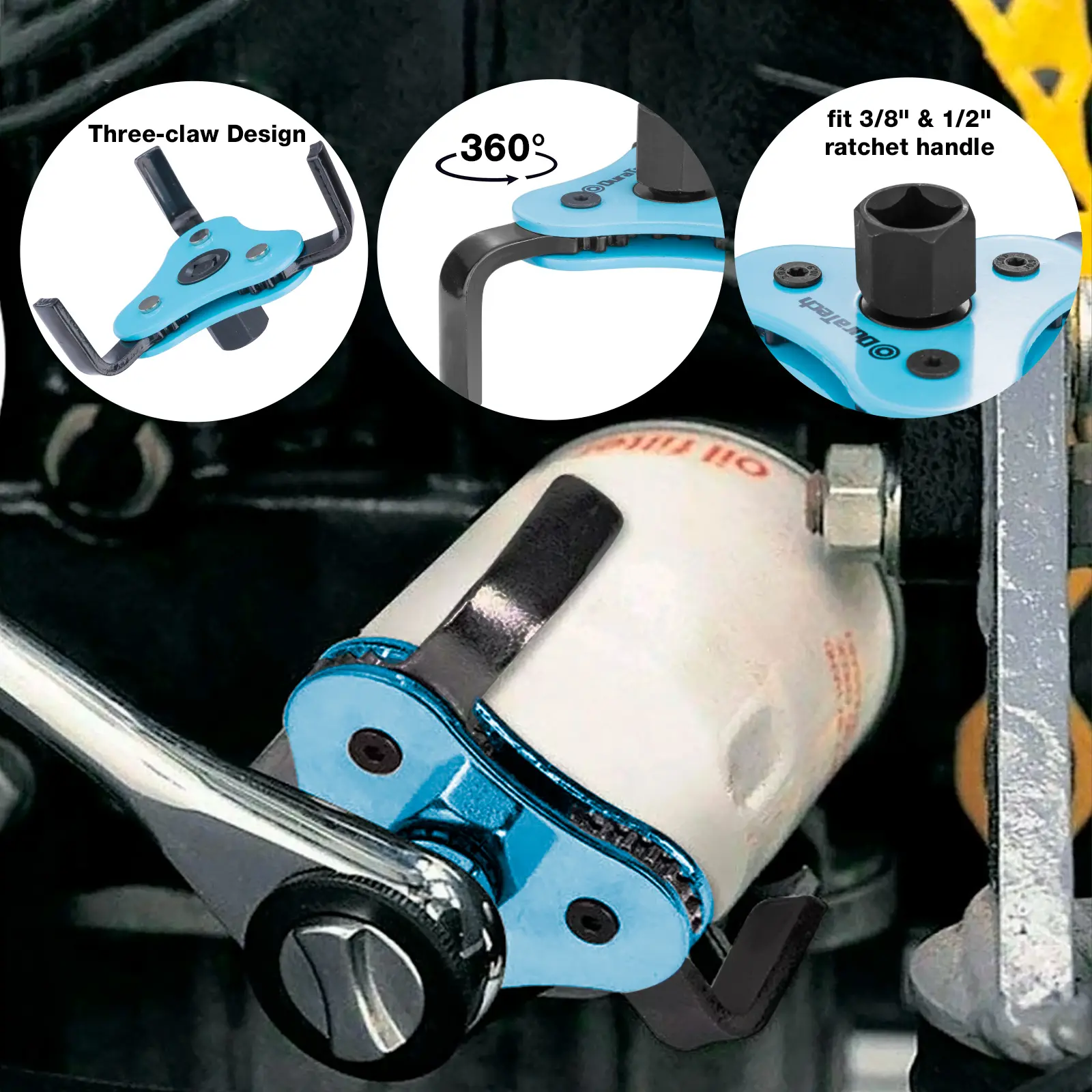 ·𝐔𝐧𝐢𝐯𝐞𝐫𝐬𝐚𝐥 𝐀𝐝𝐣𝐮𝐬𝐭𝐚𝐛𝐥𝐞 𝐎𝐢𝐥 𝐅𝐢𝐥𝐭𝐞𝐫 𝐖𝐫𝐞𝐧𝐜𝐡: Designed to be an easier way to remove oil filters, comes with a useful adapter to connect with any 3/8 ″ or 1/2 ″ drive ratchet. You will need this effective tool