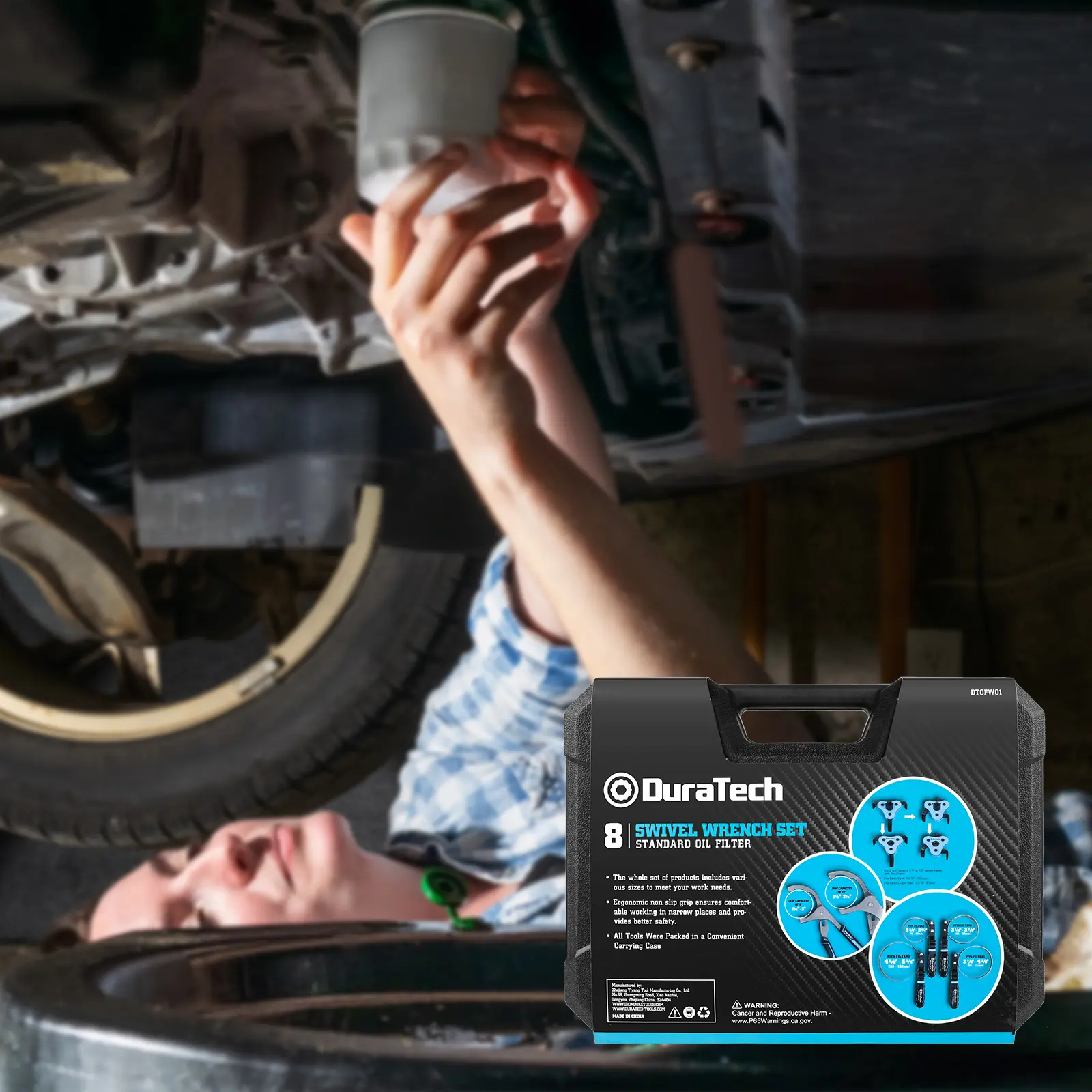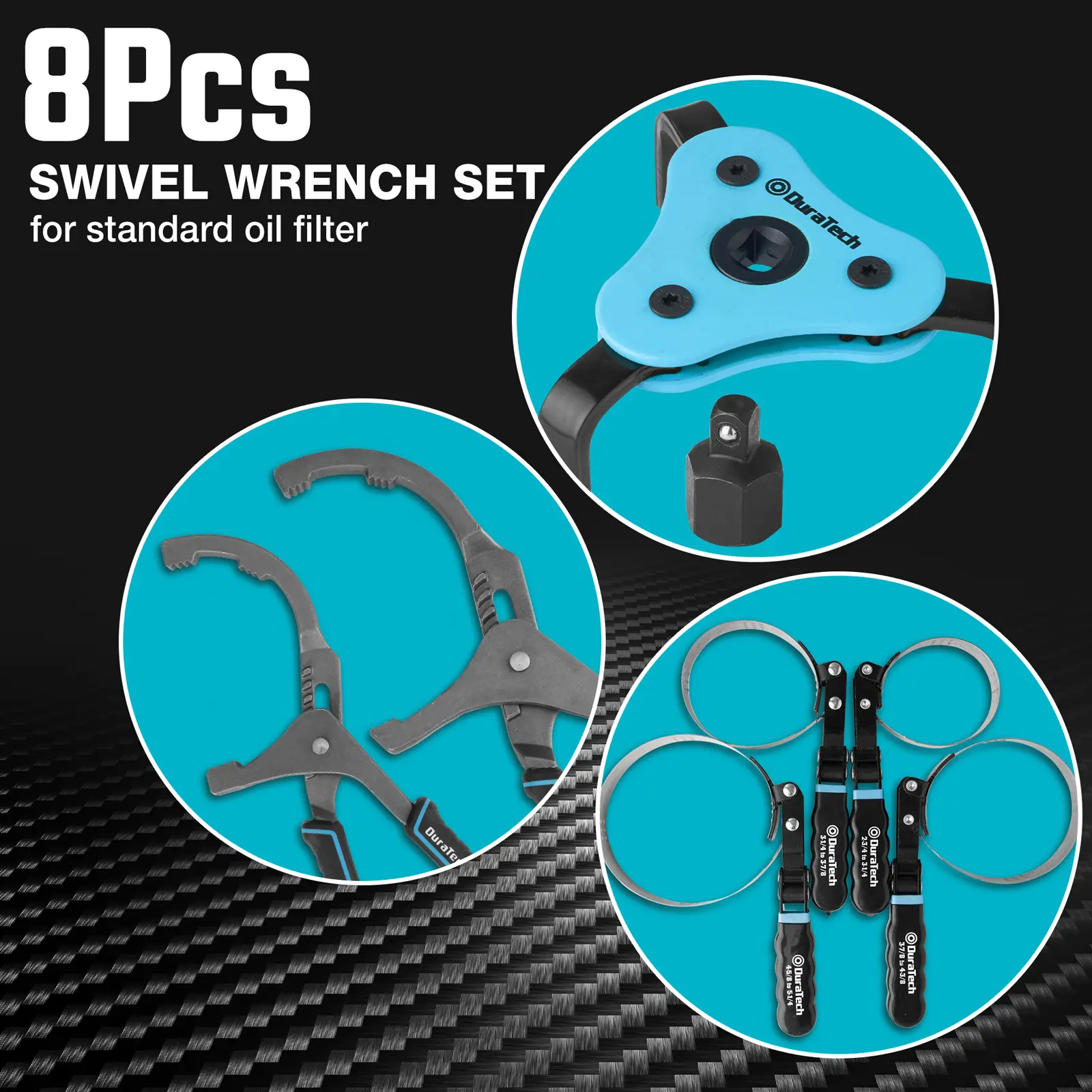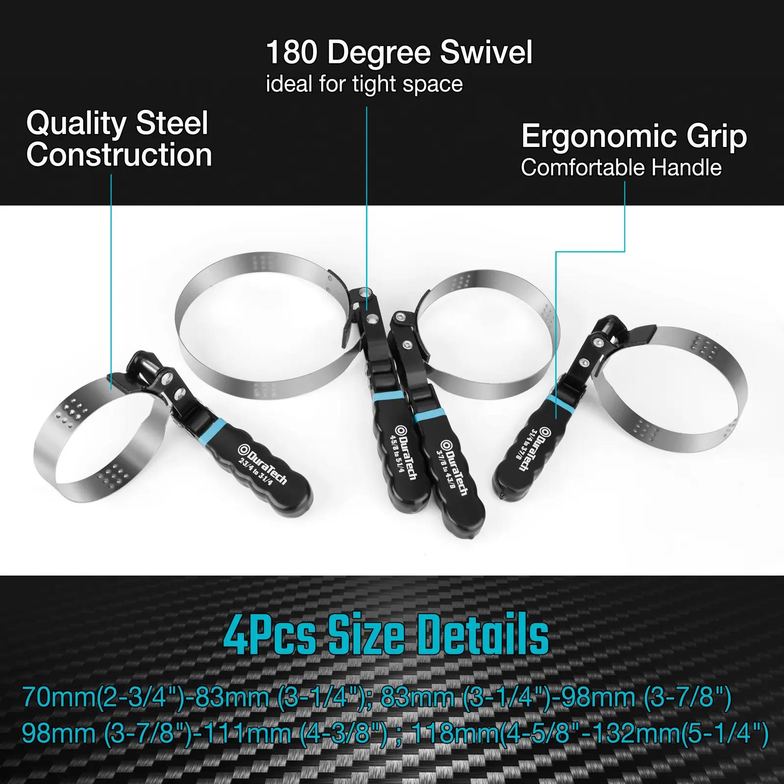 ·𝟒 𝐒𝐢𝐳𝐞 𝐎𝐢𝐥 𝐅𝐢𝐥𝐭𝐞𝐫 𝐖𝐫𝐞𝐧𝐜𝐡𝐞𝐬: Swivel Oil Filter Wrench set includes a small 2-3/4 "to 3-1/4 " (70 mm-83 mm), medium 3-1/4 " to 3-7/8 " (83 mm-98 mm), large 3-7/8 " to 4-3/8 " (98 mm-111 mm) and extra large 4-5/8 " to 5-1/4 " (118 mm-132 mm). Each 180-degree flexible swivel head makes it easy to turn in tight spaces and keep adjustable tension