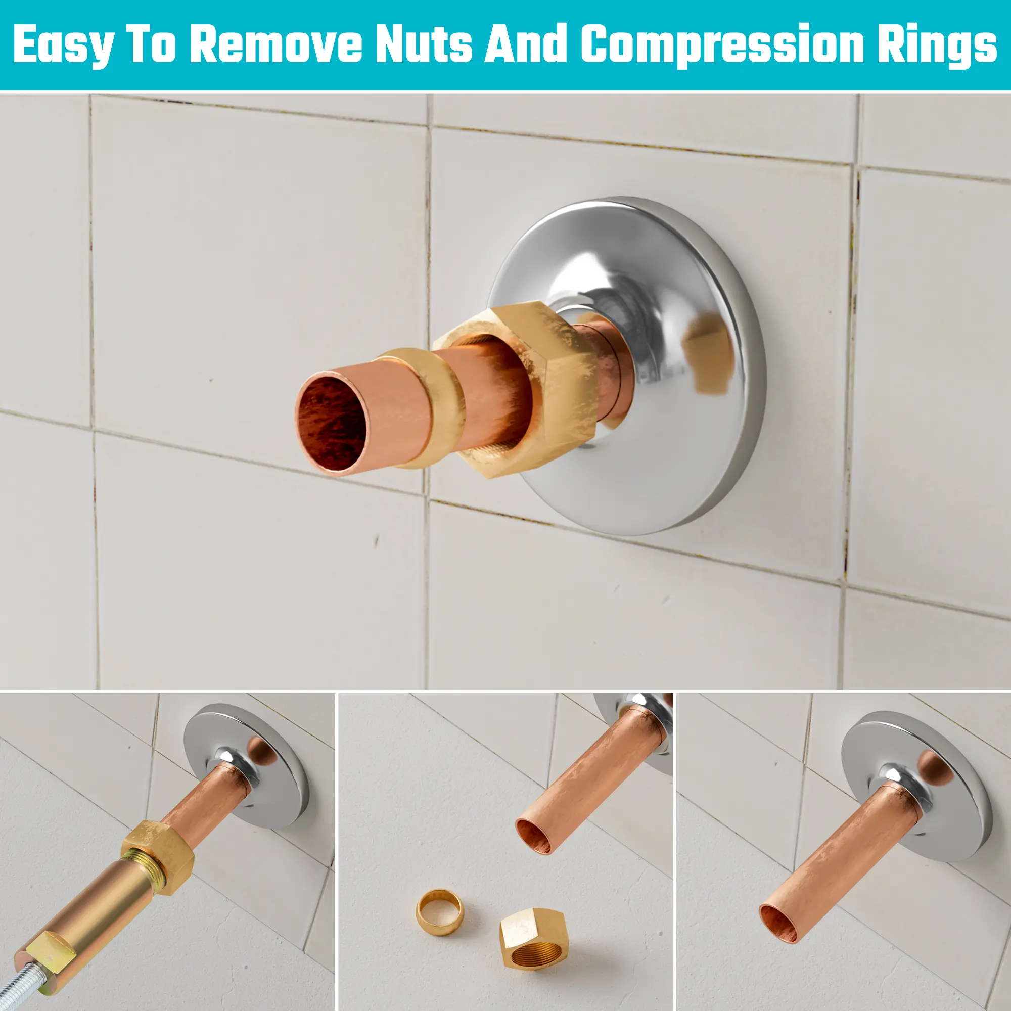 ·Work On Corroded & Frozen: High-quality A3 steel material and Zinc-plated finish ensure corrosion resistance and durability. Effortlessly remove nuts and compression rings even from corroded or frozen pipes