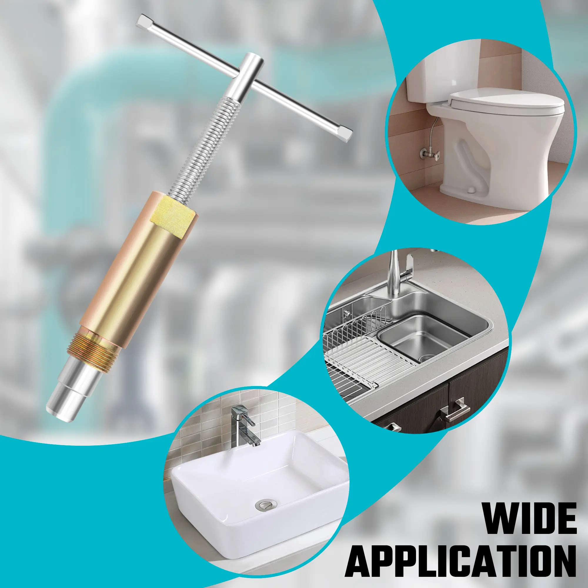 ·Quick Removal: Insert the old pipe nut into the tool's threaded opening and tighten the compression nut counterclockwise. The unique T-bar design provides the best leverage. After slowly turning clockwise a few turns, the old nut will come off easily