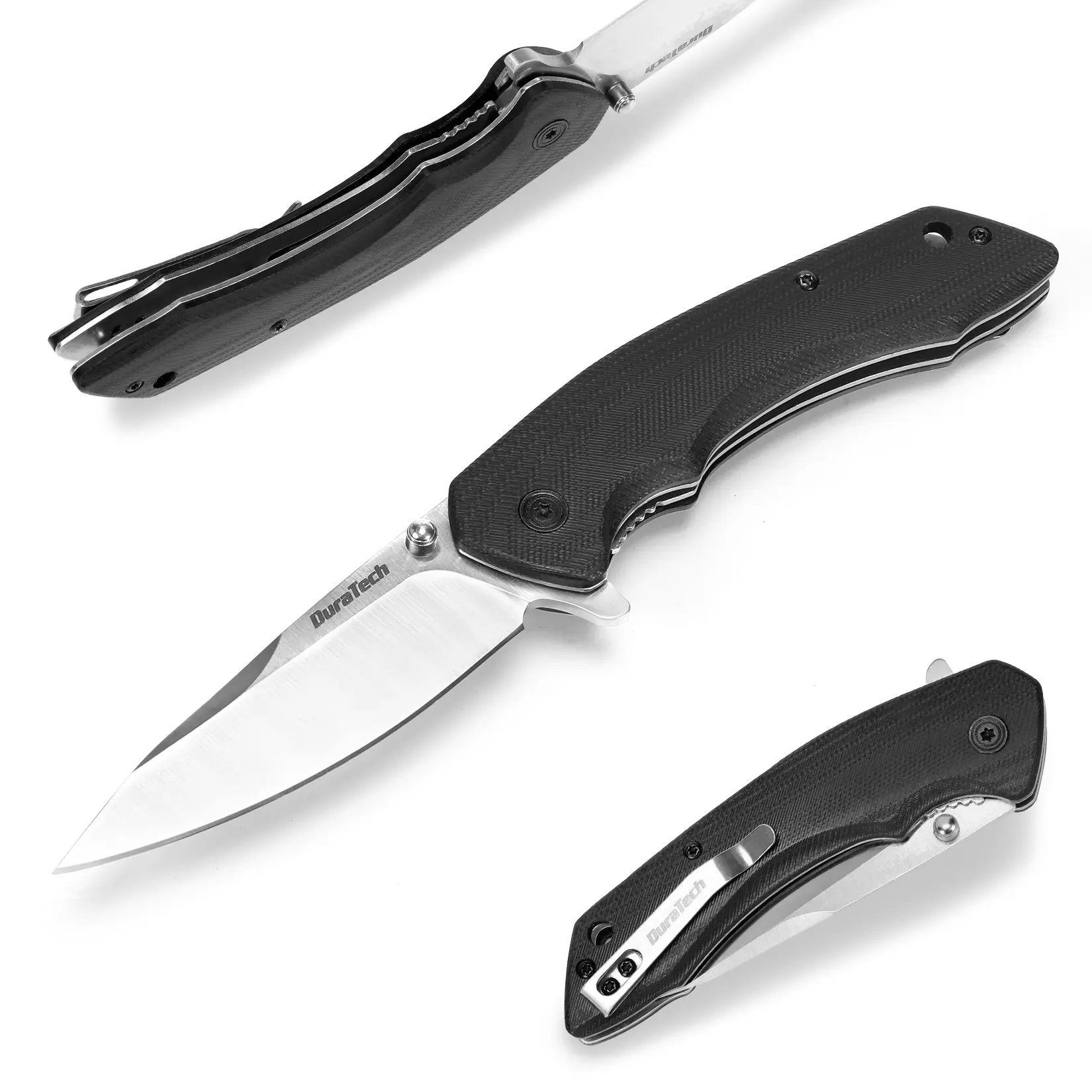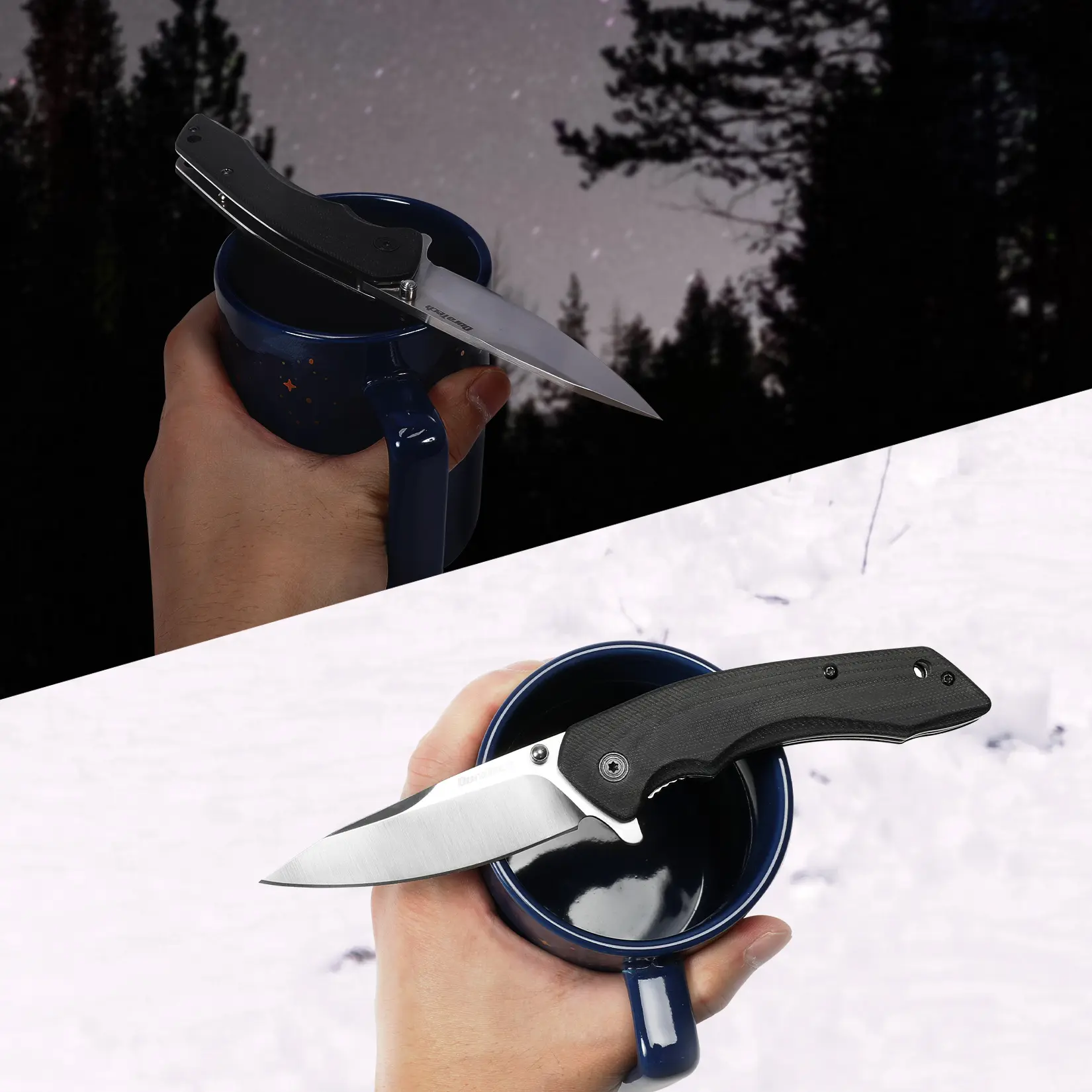 ·Black smooth G10 handle with pocket clip: lightweight and textured G10 handle provides comfortable grip and balance, ergonomic handle groove is non-slip. It features a pocket clip for convenient daily carry and storage.