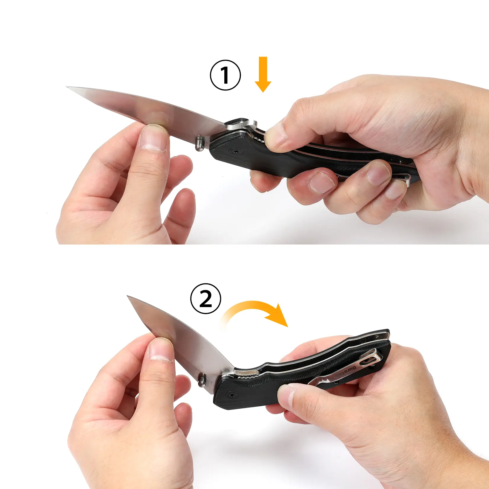 ·Secure liner lock: Secure liner lock prevents the blade from accidental close during use. To close, push left on the front of the liner lock, to release the lock.