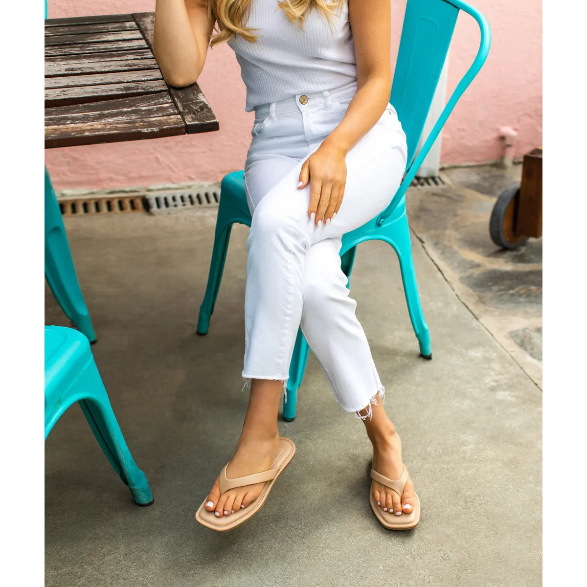 Play it simple in sidewalk skimming sandals. These ultra padded flip-flops feature soft kidskin faux leather in elegant shades with a modern squared toe shape. The DURHAM thong sandals are a closet staple.