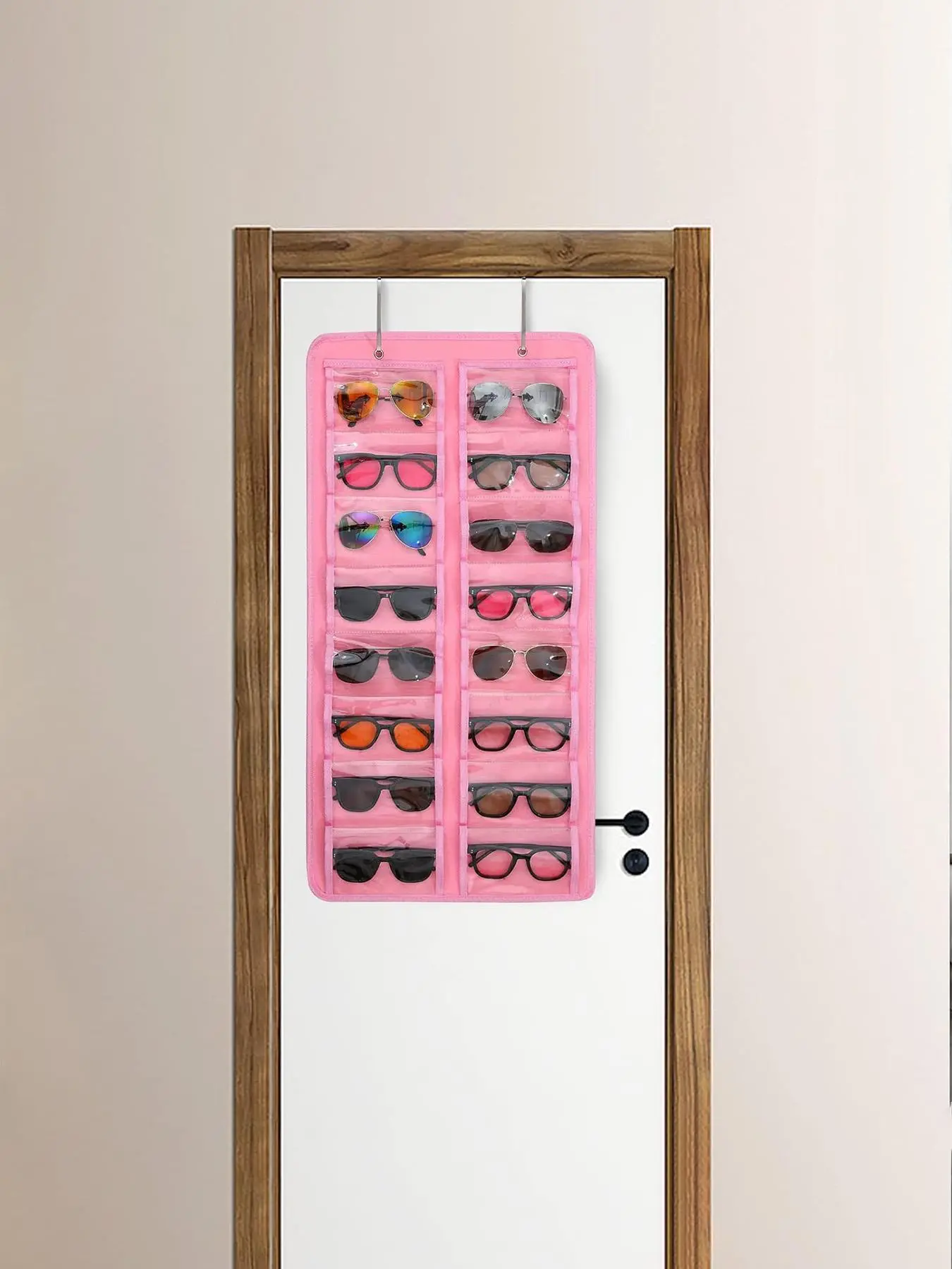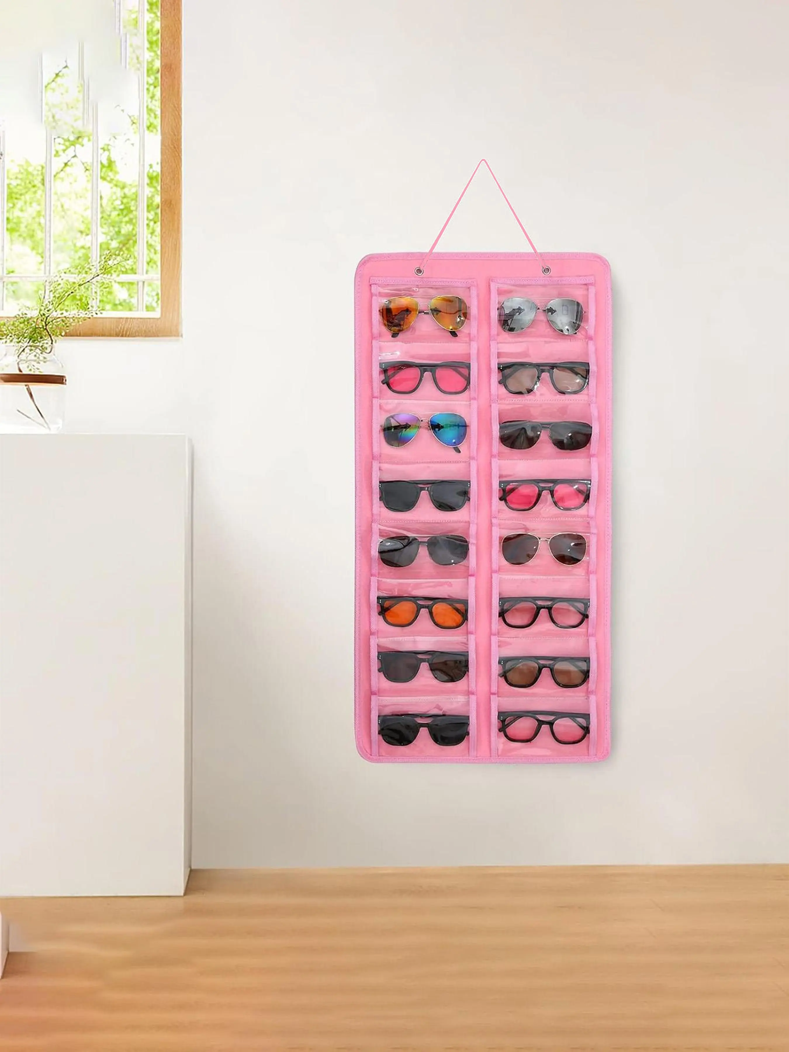 Dustproof Sunglasses Organiser, Wall Mounted Sunglasses Organiser, 16 Compartment Glasses Organiser, Space Saving Storage (Pouch Only)