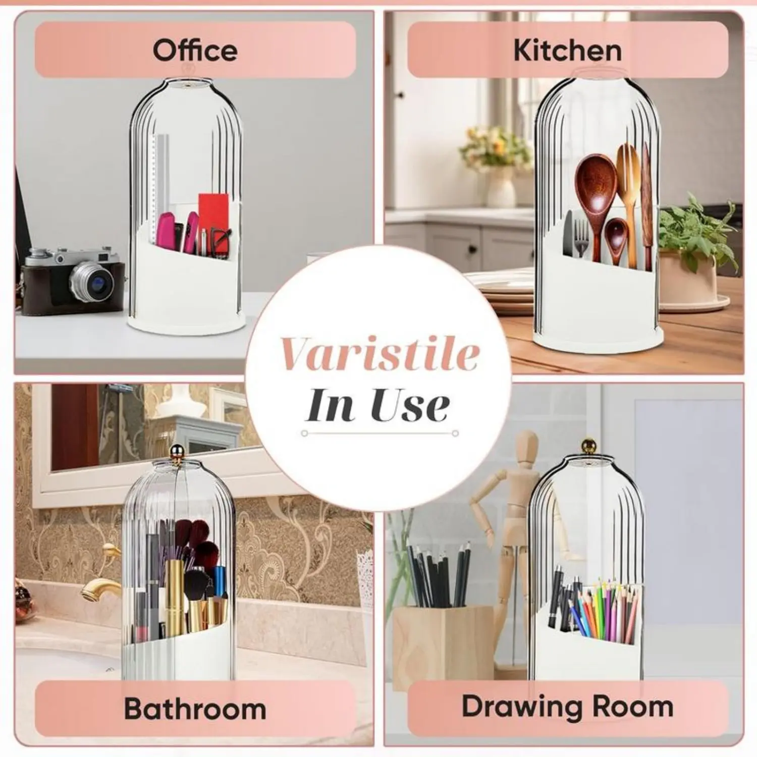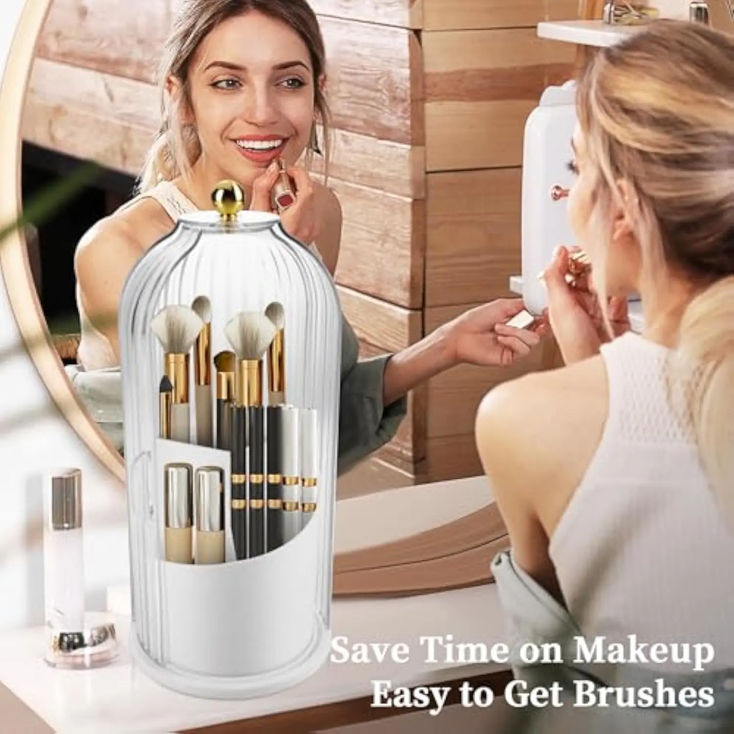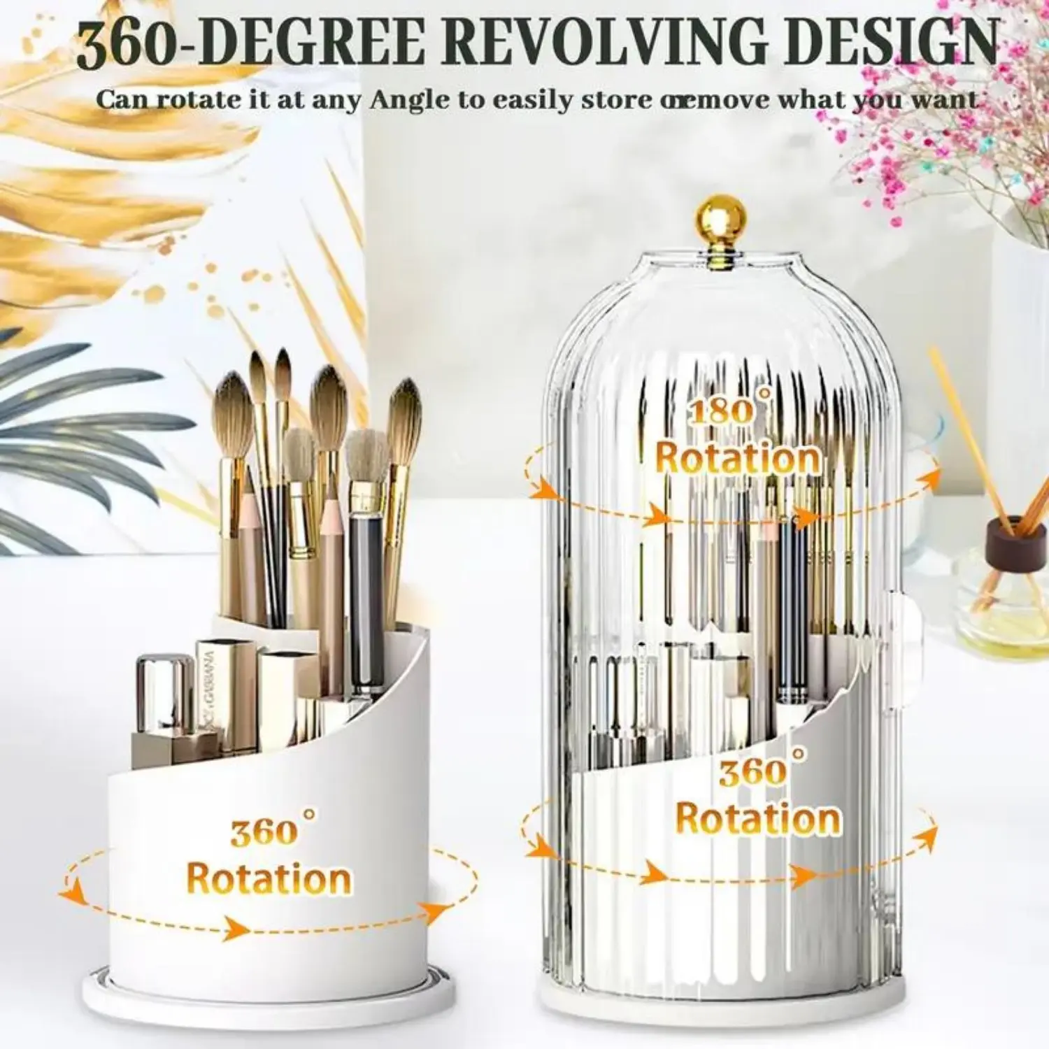 【Makeup Brush Holders with Sliding Lid】The makeup brush holder features a 180° sliding lid, lid can be smoothly closed and opened to prevent dirt and water from staining the toothbrush. The inside of the makeup brush holder can be rotated 360° for easy access to your makeup brush, toothbrush, toothpaste and other items from any angle.