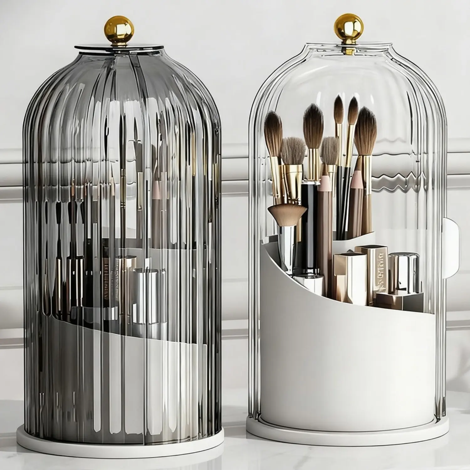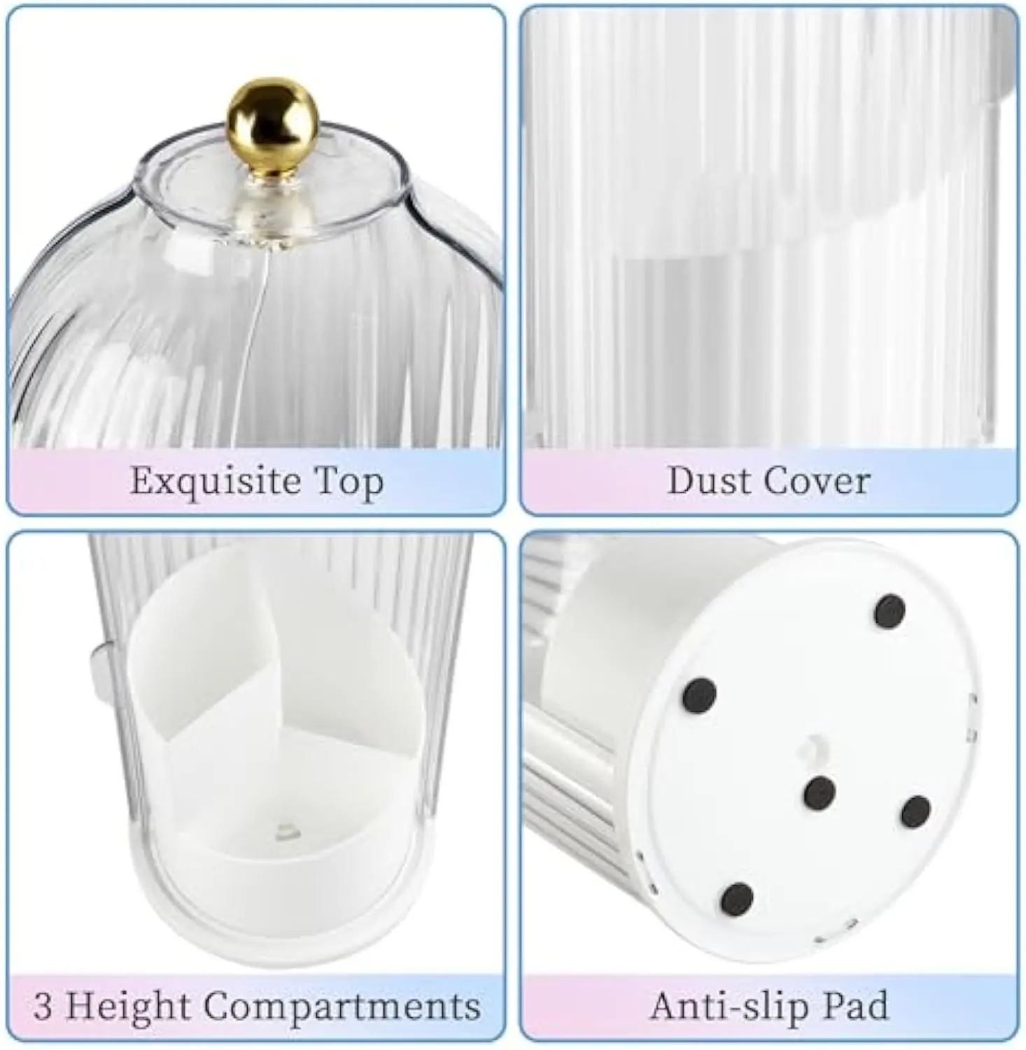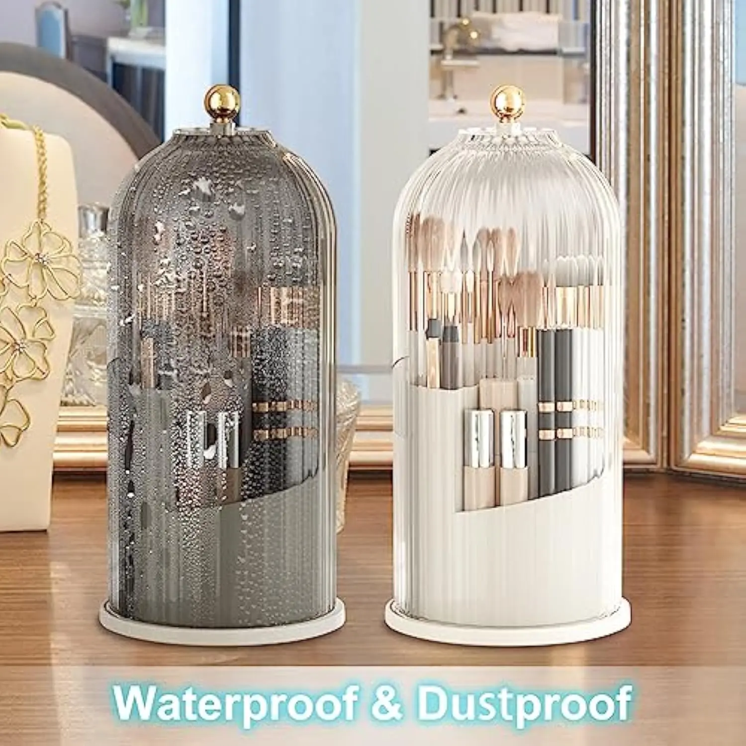 【Makeup Brush Holders with Sliding Lid】The makeup brush holder features a 180° sliding lid, lid can be smoothly closed and opened to prevent dirt and water from staining the toothbrush. The inside of the makeup brush holder can be rotated 360° for easy access to your makeup brush, toothbrush, toothpaste and other items from any angle.