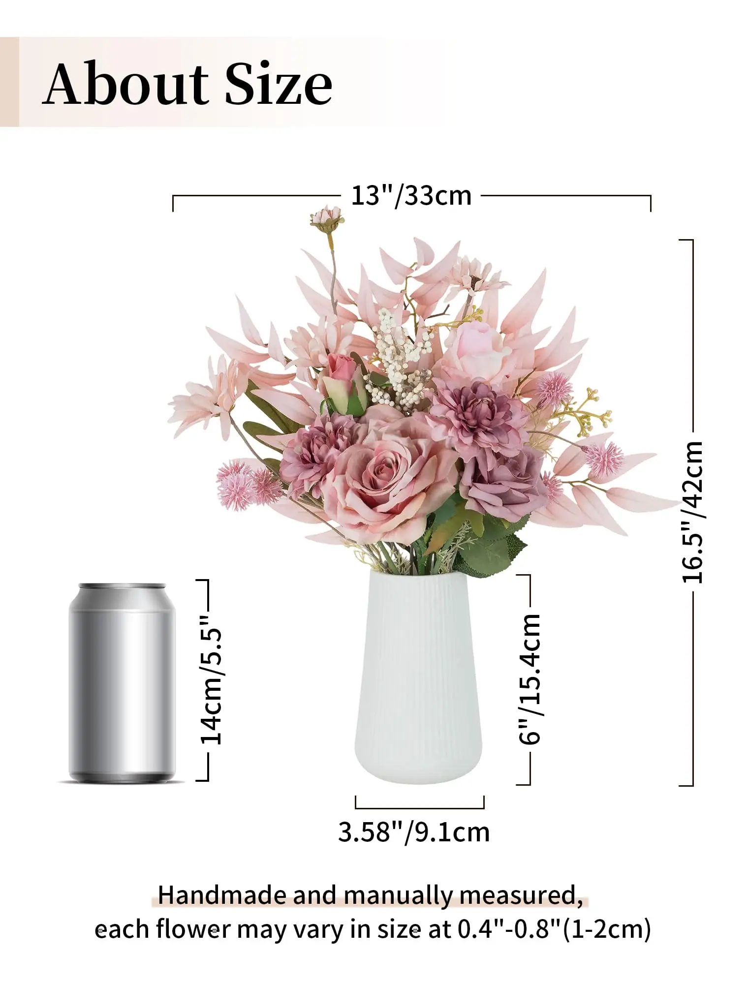 • Ideal for various settings: kitchen, dining room, weddings. • Dusty pink color enhances any decor style. • Ceramic vase complements the artificial flowers perfectly. • Enhance your home's ambiance with this elegant bouquet.
