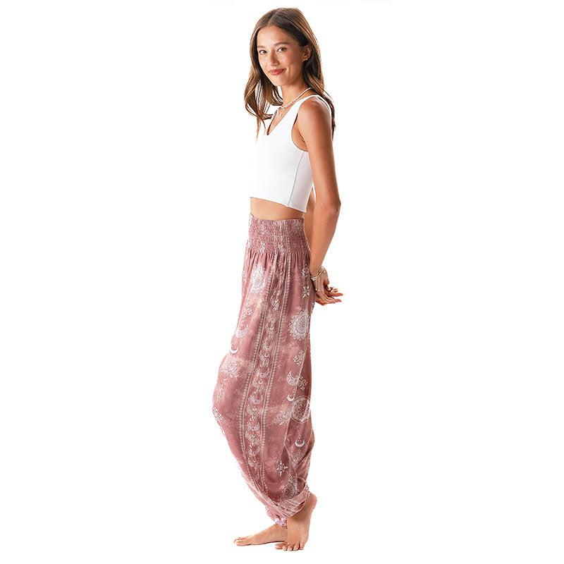 Drift Away in Comfort: The Dusty Rose Lotus Moon Harem Pants