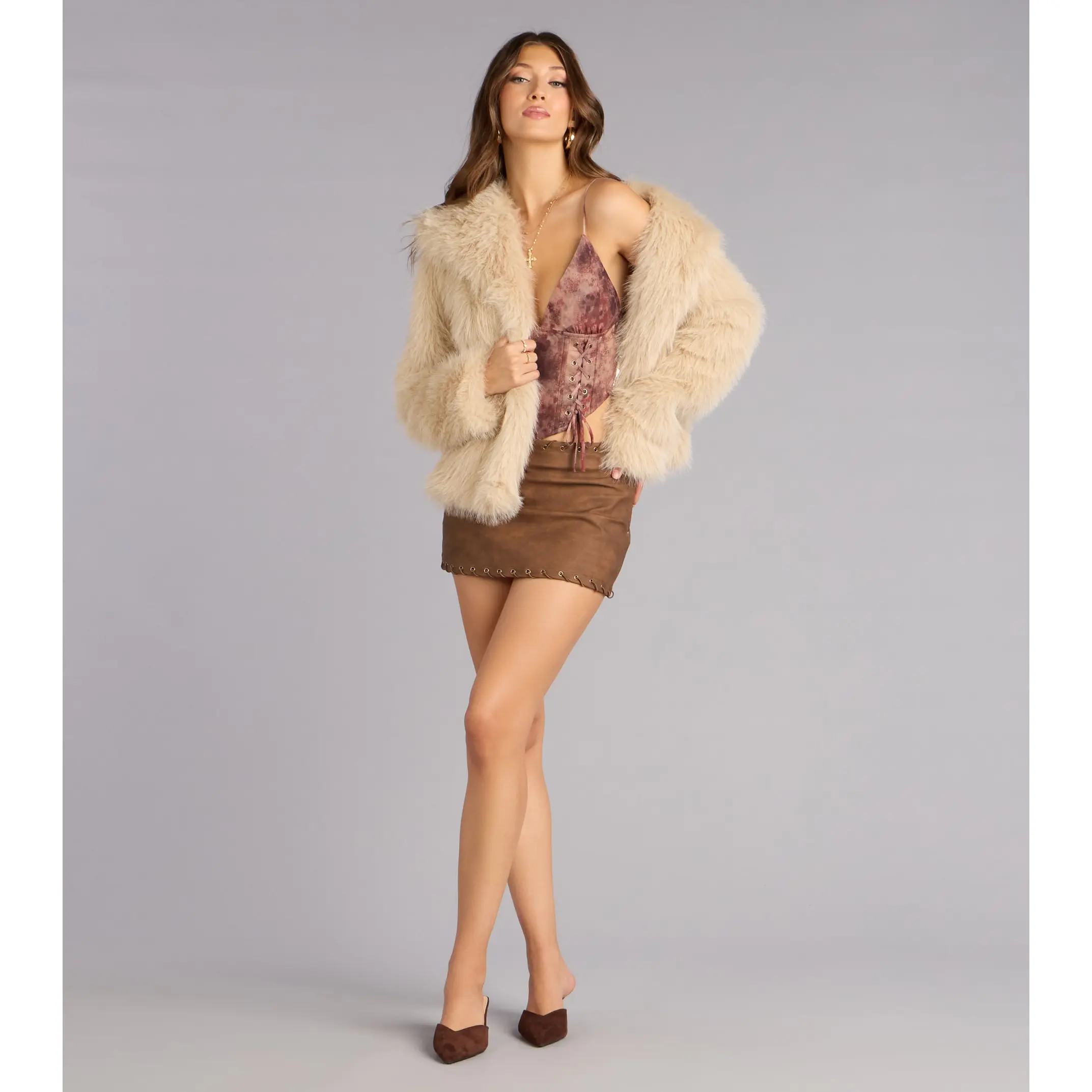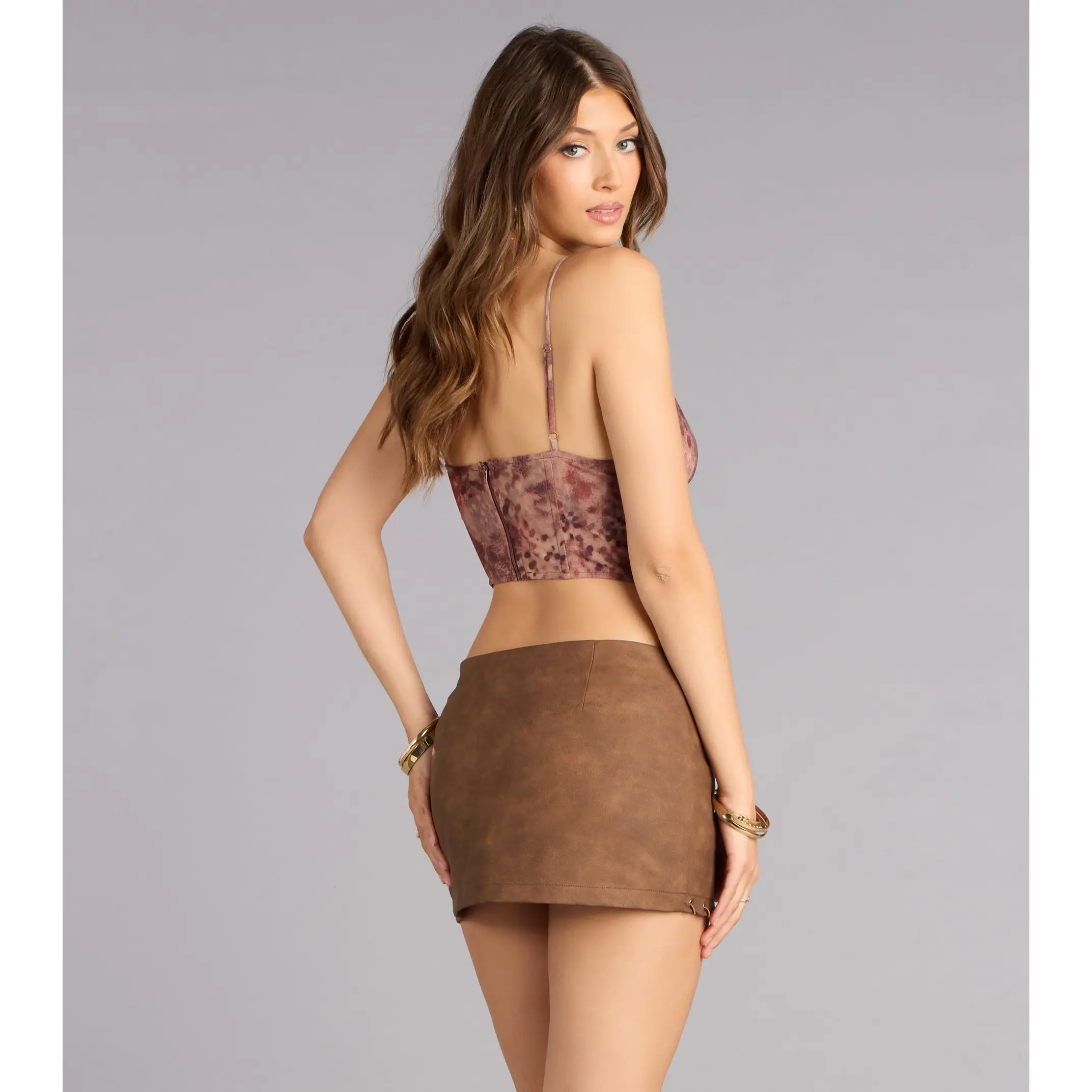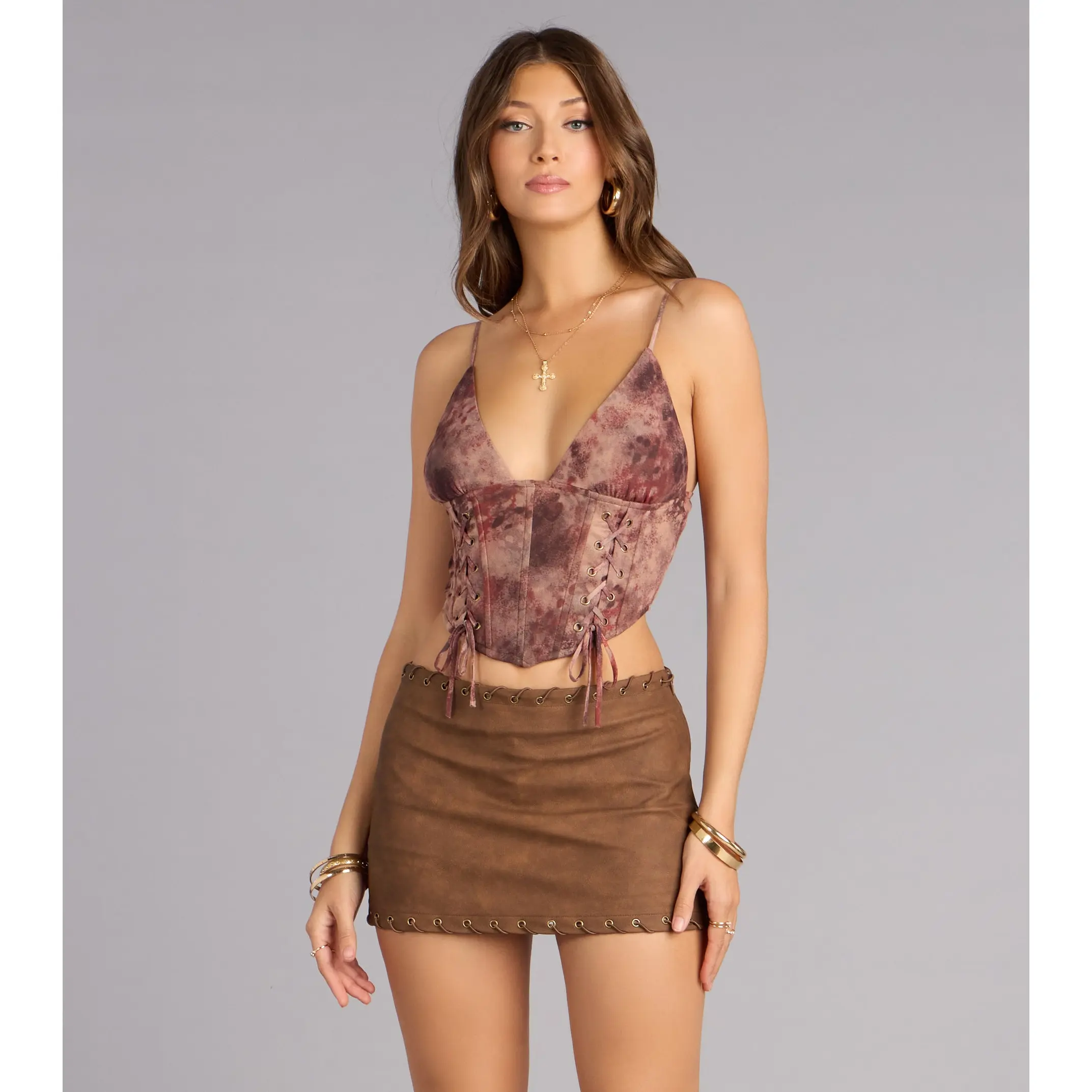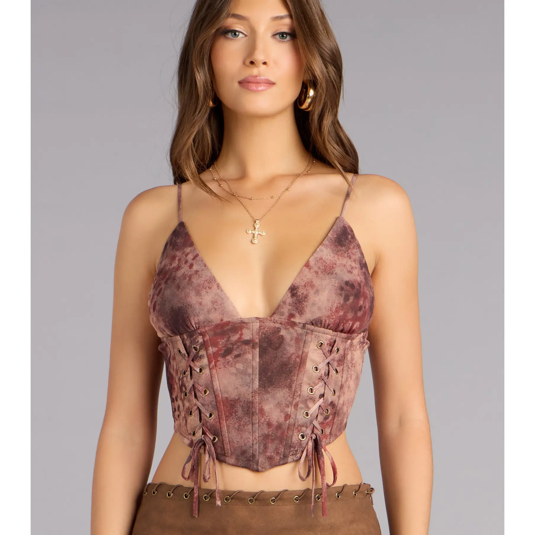 An abstract print corset that brings art-girl energy with a sultry twist. The lace-up sides sculpt your waist while the deep V neckline gives it that cute confidence. Soft, moody tones make it perfect for pairing with your favorite bottoms.