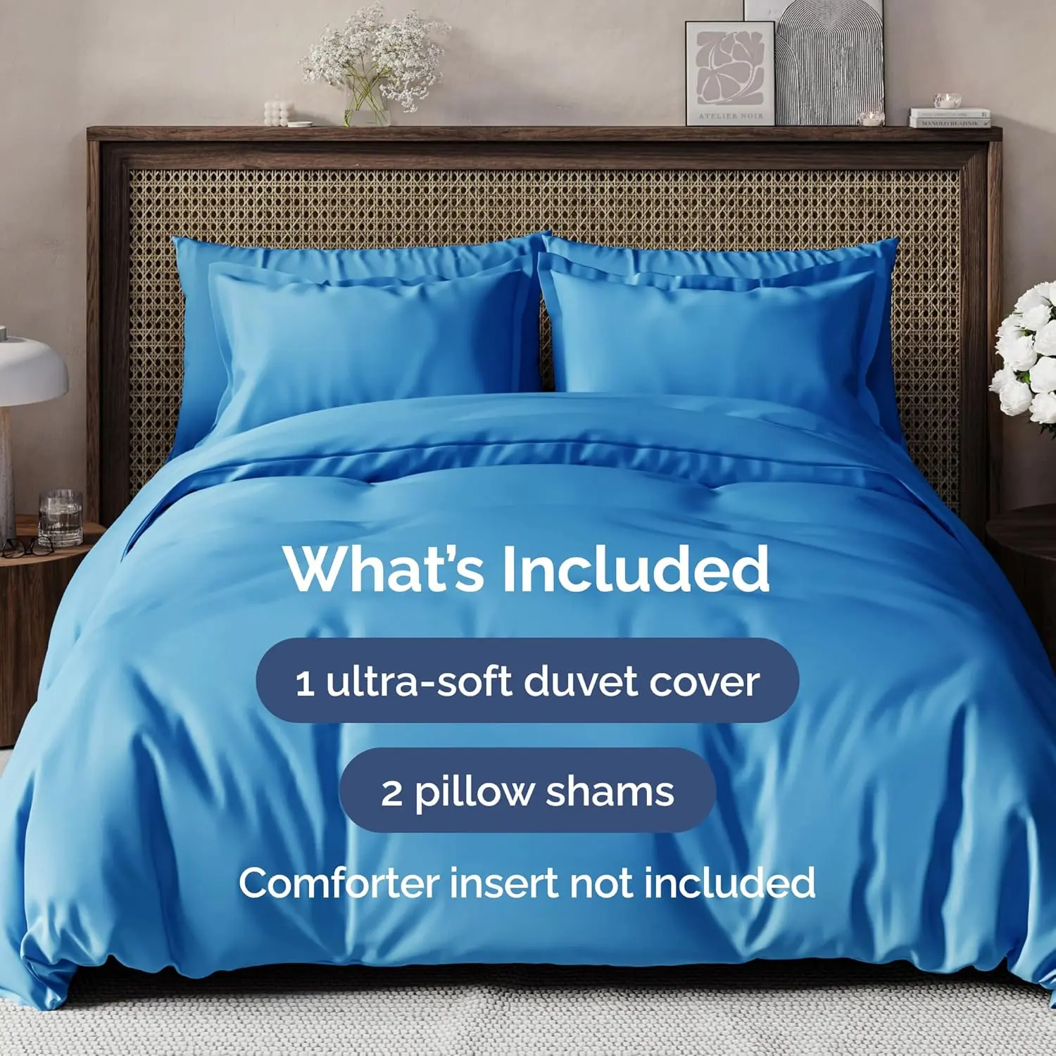 ·EXTRA SOFT & COMFY: Our duvet covers are made from plush double-brushed material, ensuring an exceptionally soft and smooth look and feel. 3 PIECE KING SIZE DUVET COVER SET: Transform your bedroom with our ultra soft 104” x 90” King size duvet cover set complete w/ (2) 20” x 36” pillow shams.