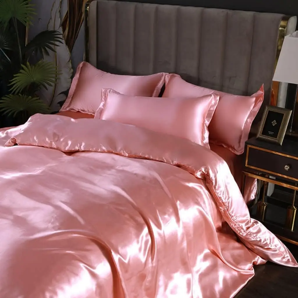 Silk Duvet Cover,Soft Like Satin Luxury Pink Silky Quilt Cover,Adults Bedroom Decor Chic Luxurious Silky Bed Set,No Comforter